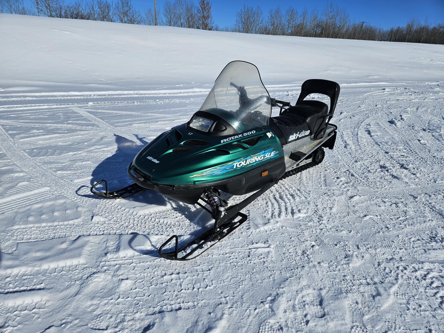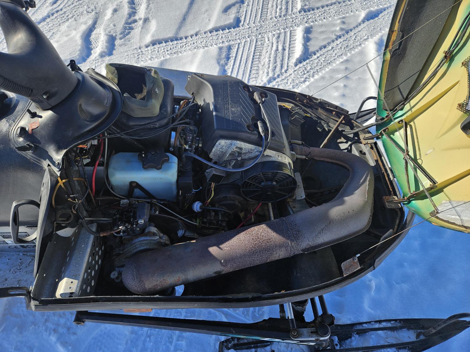 500 cc Bombardier 2 cylinder 2 stroke Fan cooled engine, electric start, reverse, windshield, hand and thumb warmers, 2 up seat with backrest, 136 inch long track, 15 inch wide track, 1.25 inch paddles, rear tow hitch