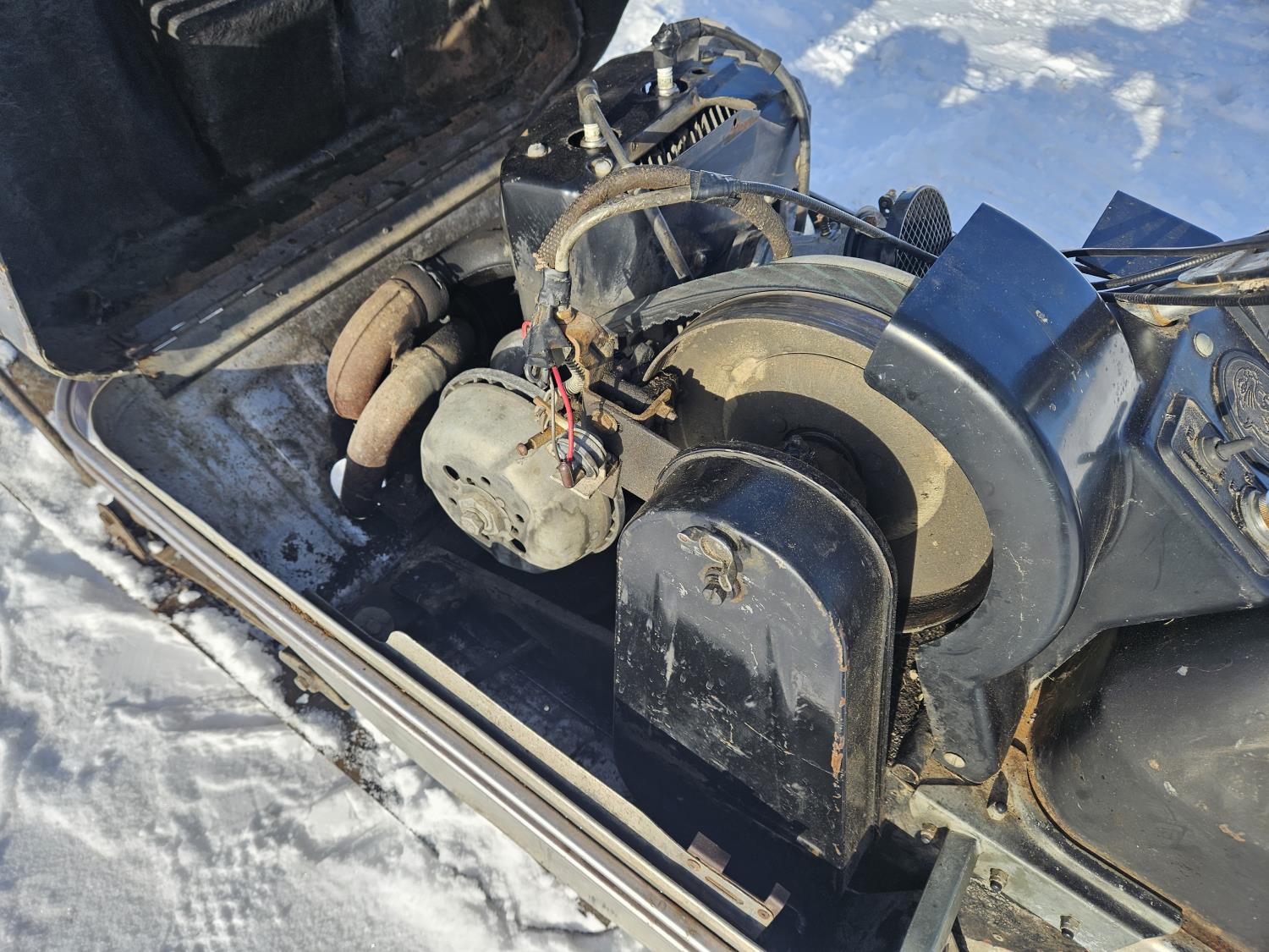 399 cc 2 cylinder 2 stroke Fan cooled engine, windshield, steel cleated track, new drive chain, rebuilt carb