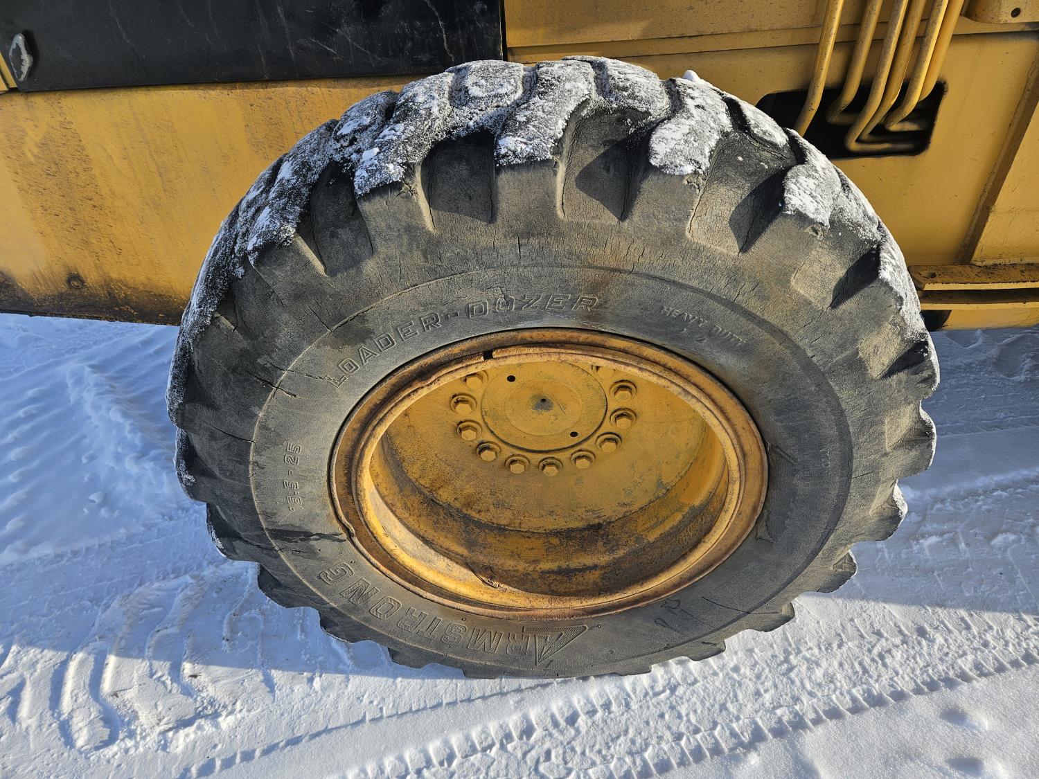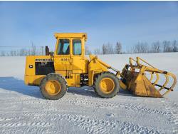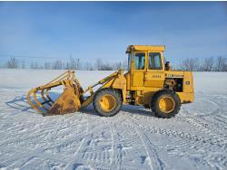 Enclosed cab, 6 cylinder diesel engine, block heater, 84 inch grapple bucket, 15.5-25 tires