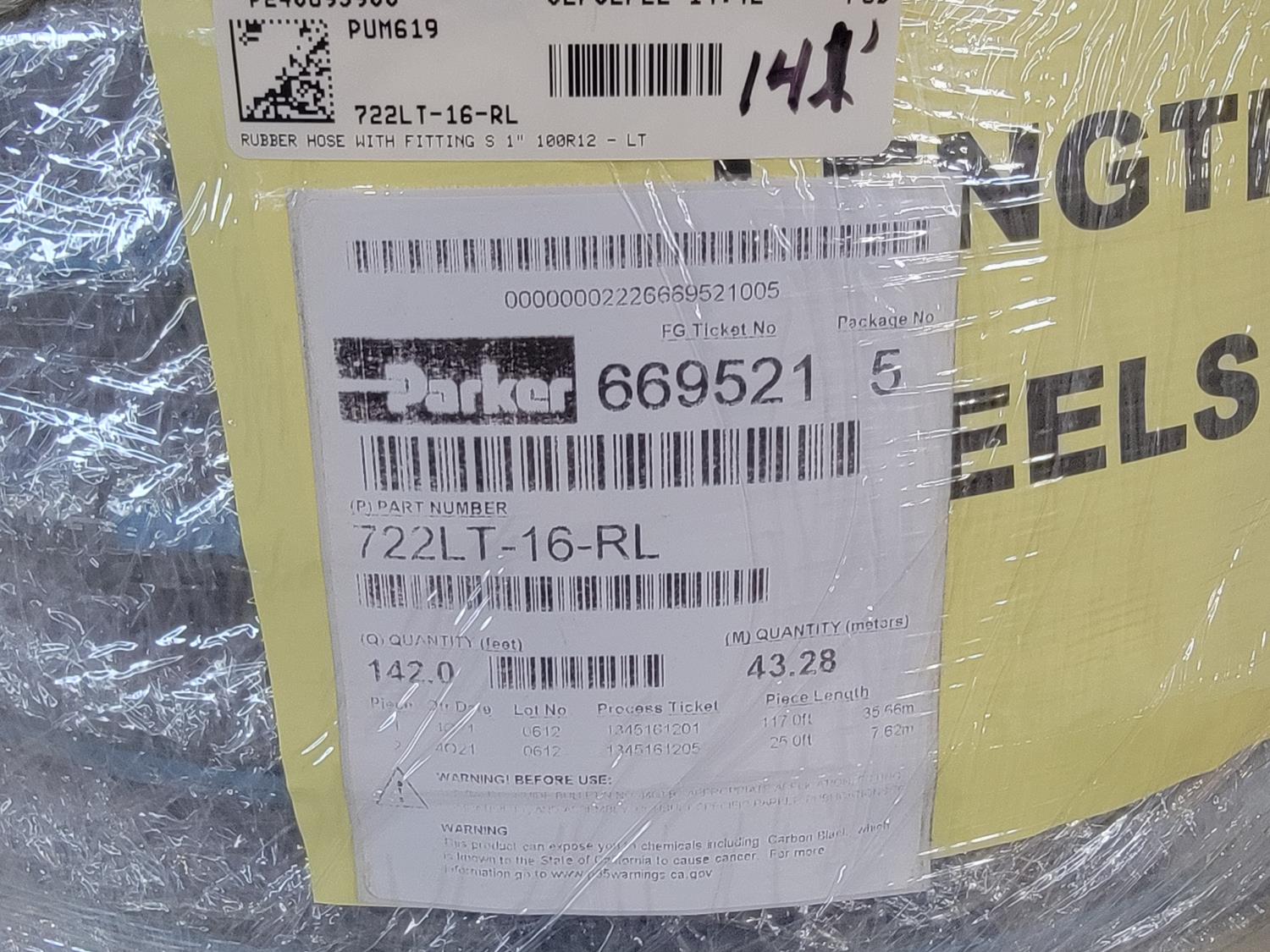 1107 141 Ft 1 Inch 4000 PSI Hydraulic Hose (Unused)