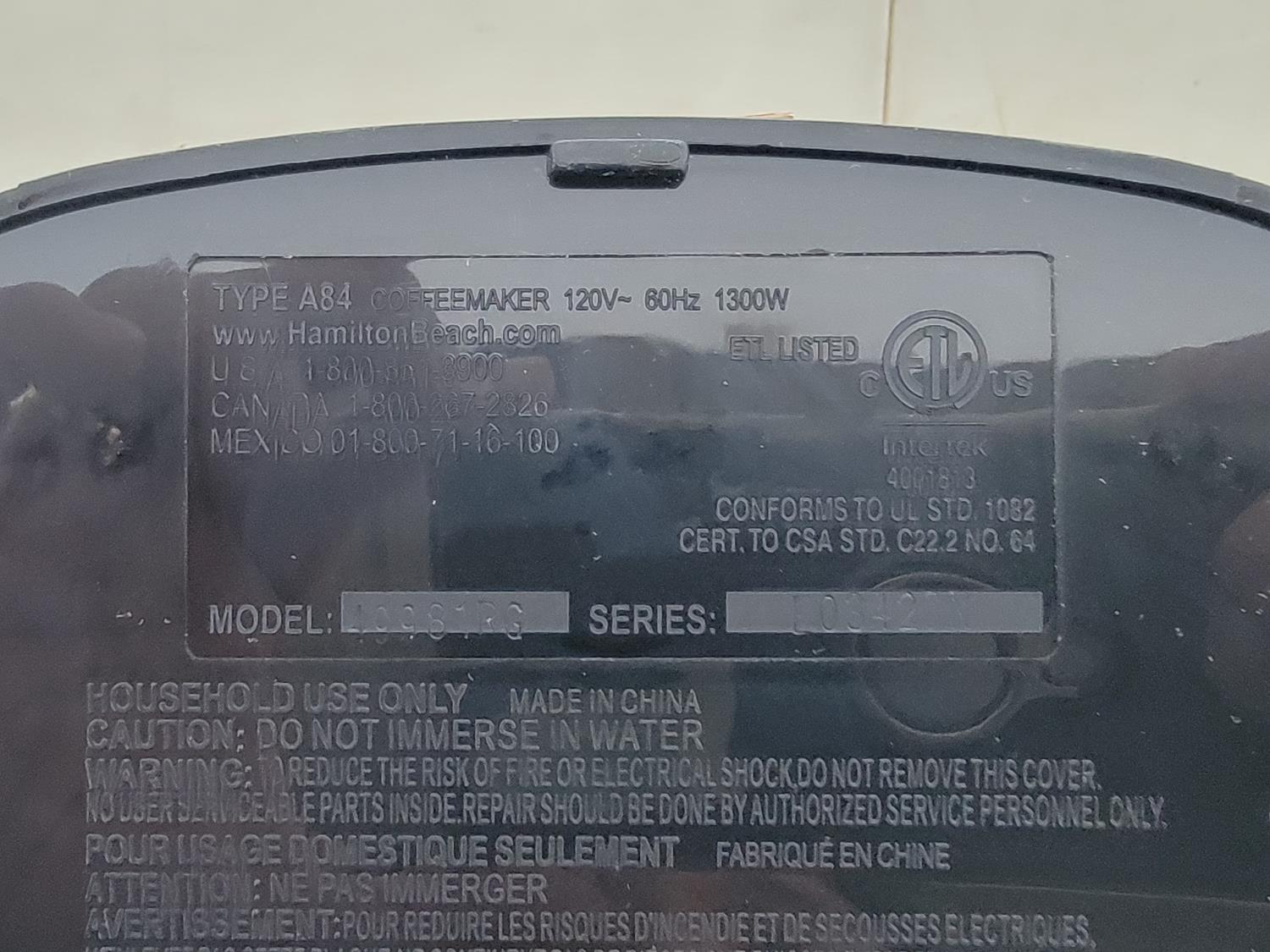1293 Hamilton Beach Single Serve Coffee Maker (Unused)