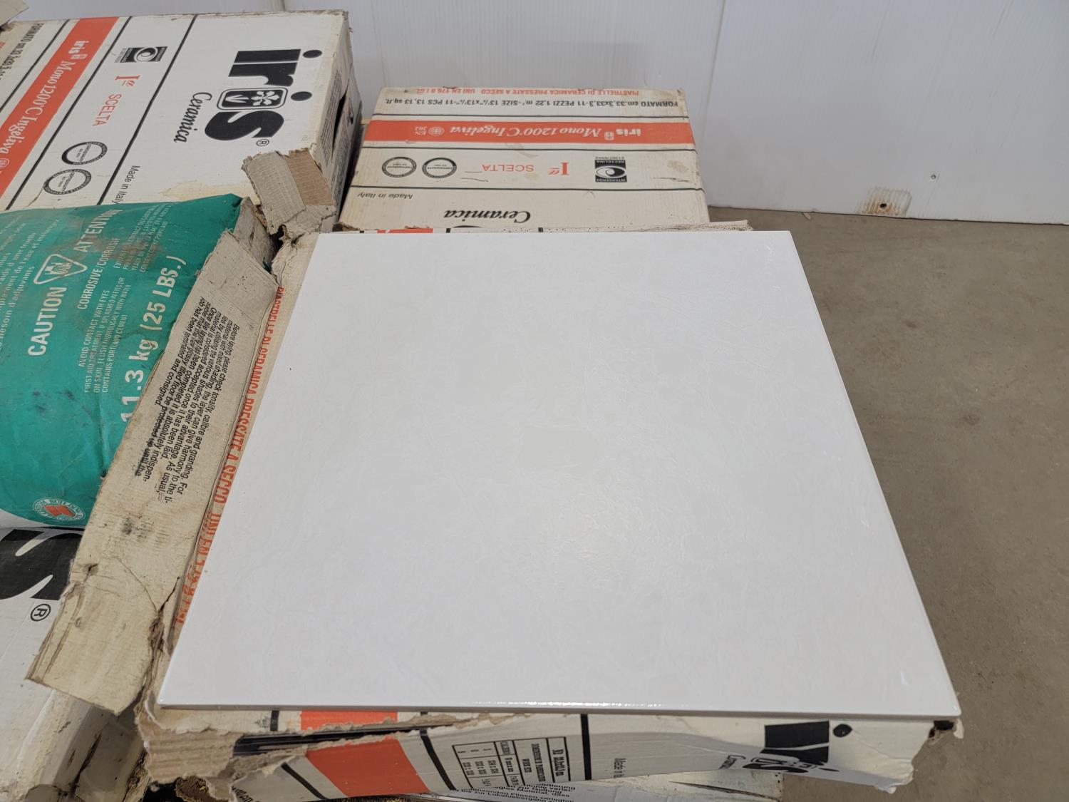 1090 Qty of Tiles, Bonding Mortar and Mastercraft 4-1/2 Inch Wet Tile Saw