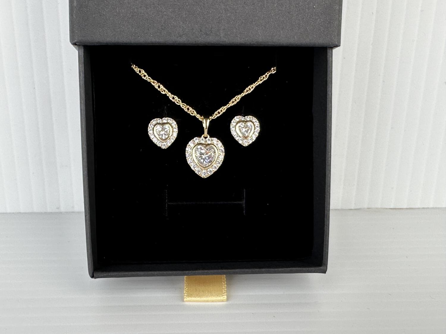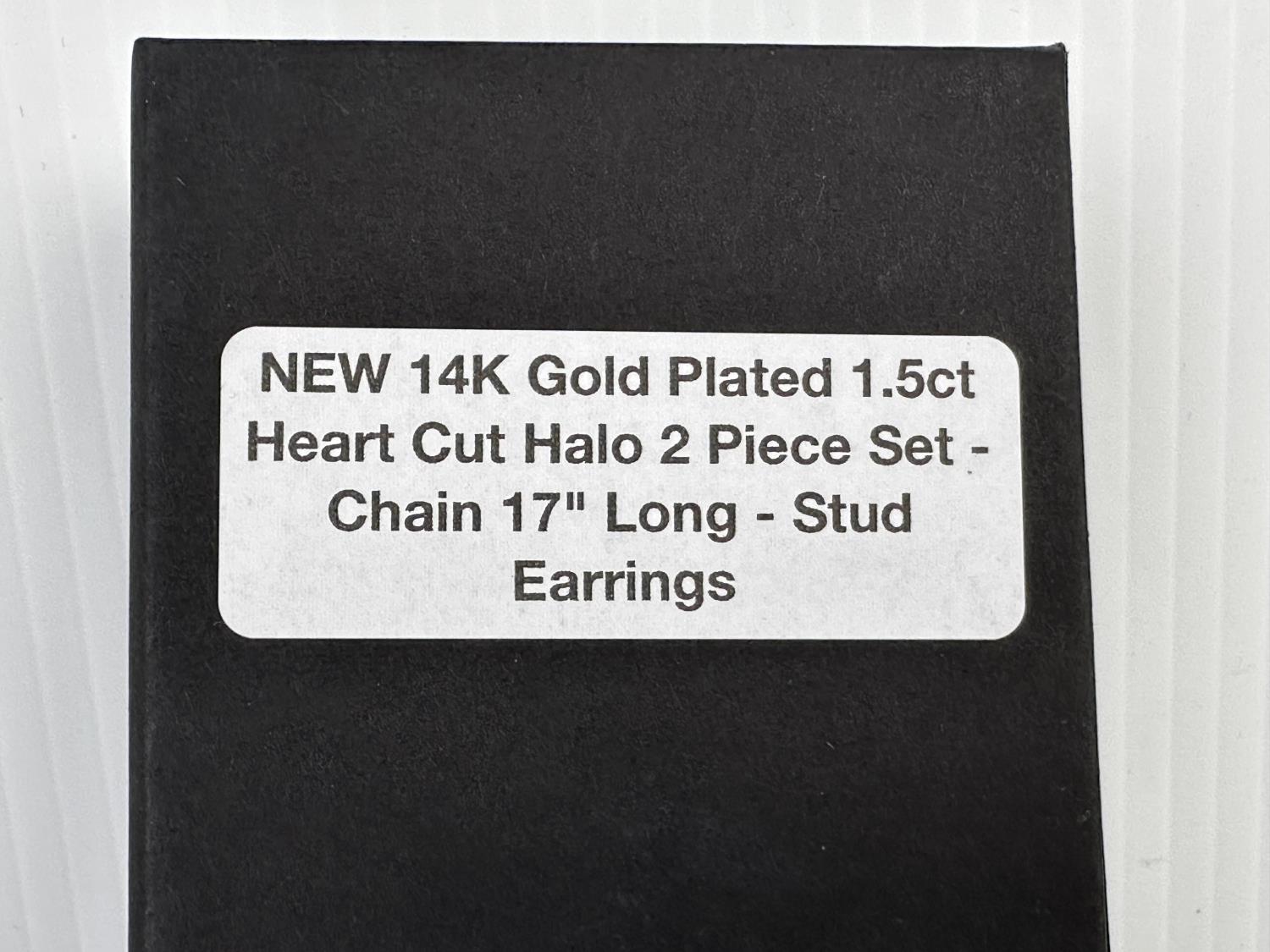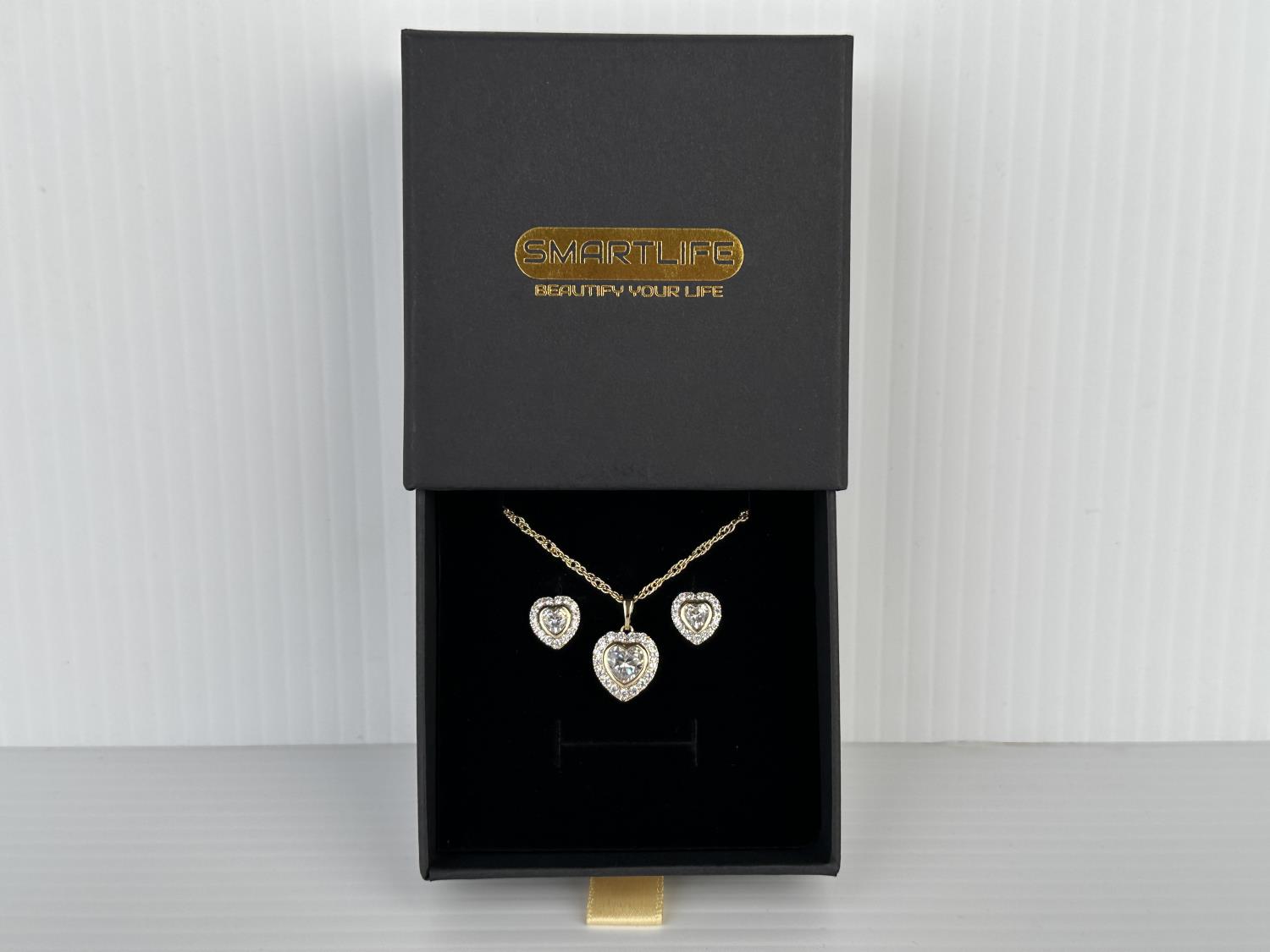 1364 Smartlife 14K Gold Plated 1.5 Ct Heart Cut Halo 2 Piece Set (Unused)
