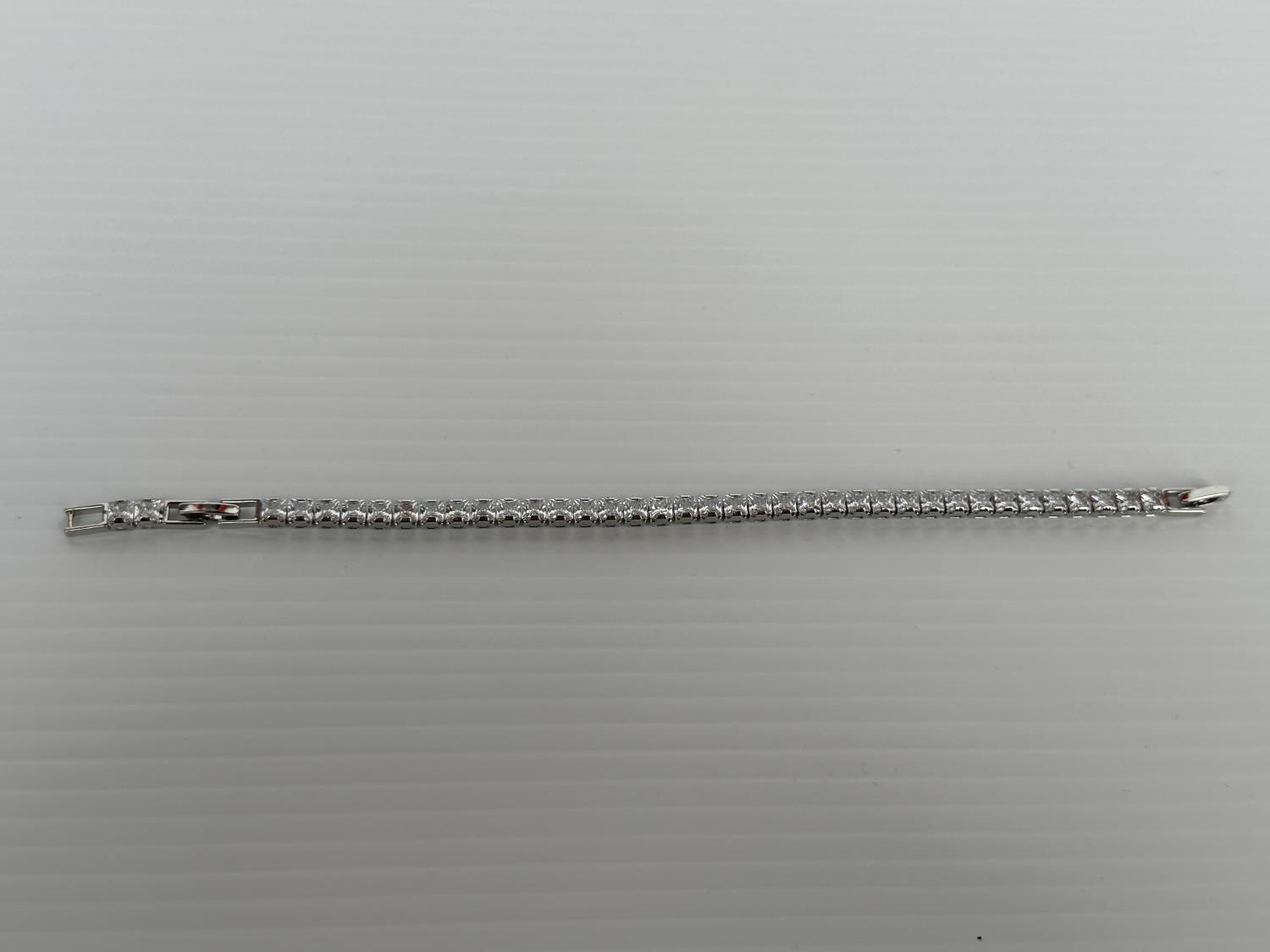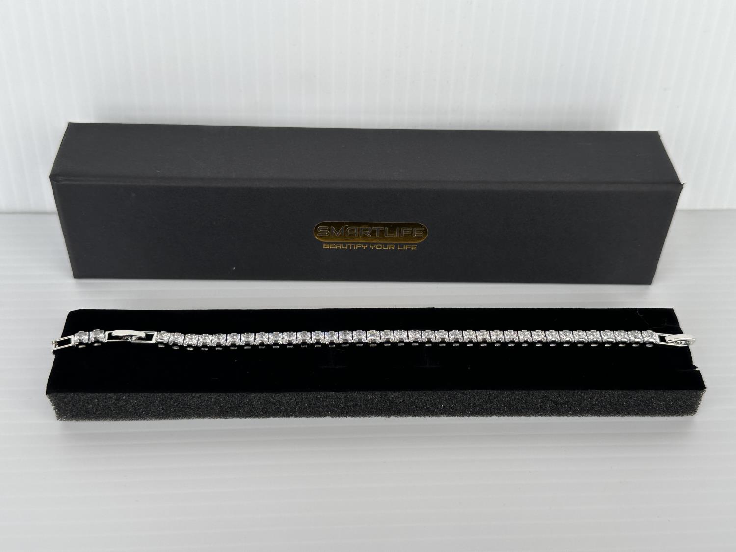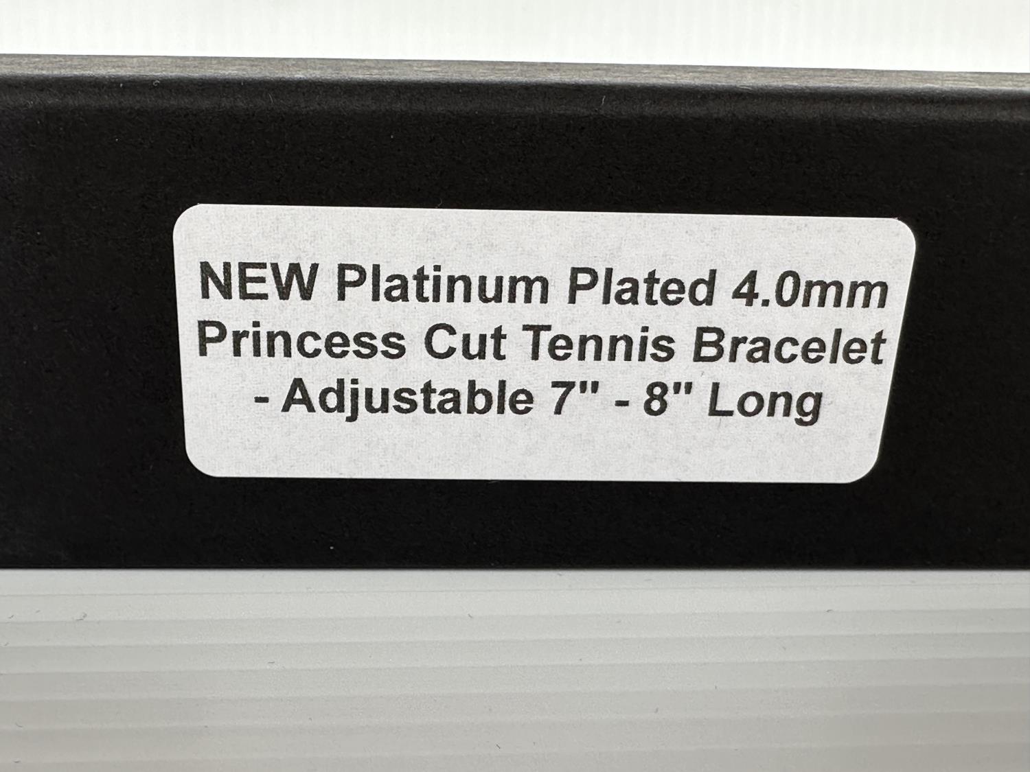 1366 Smartlife Platinum Plated 4.0 mm Princess Cut Tennis Bracelet (Unused)