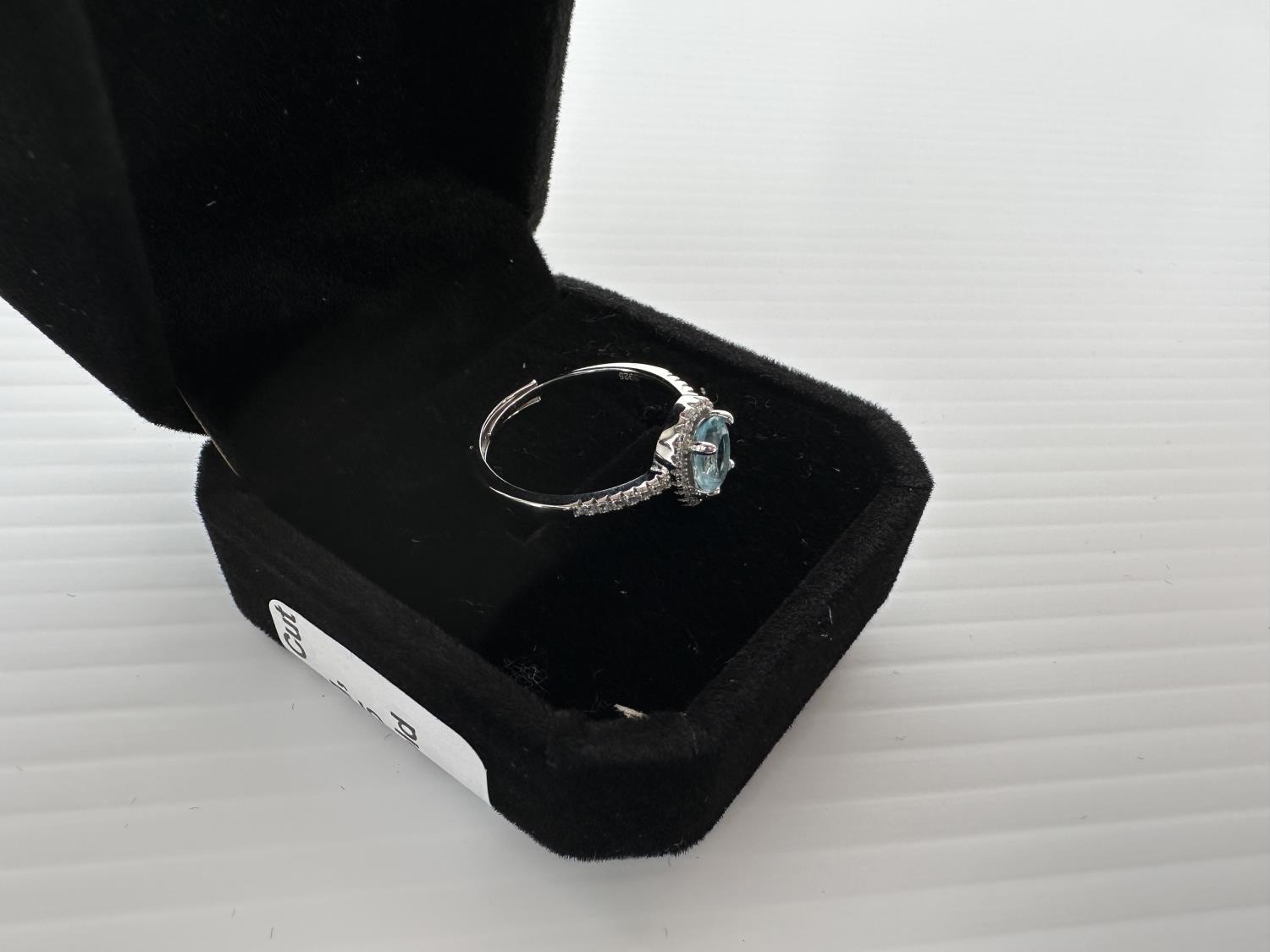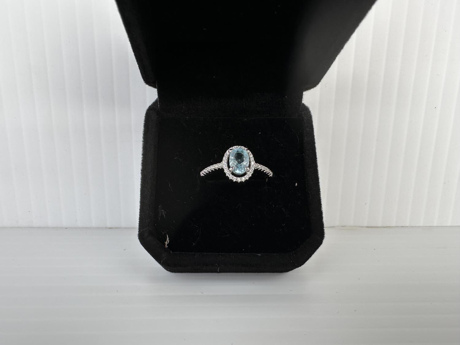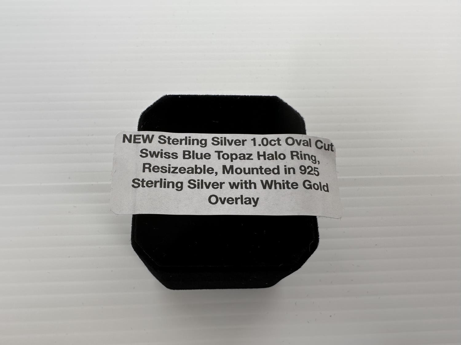 1352 Smartlife Sterling Silver 1.0 Ct Oval Cut Swiss Blue Topaz Halo Ring (Unused)