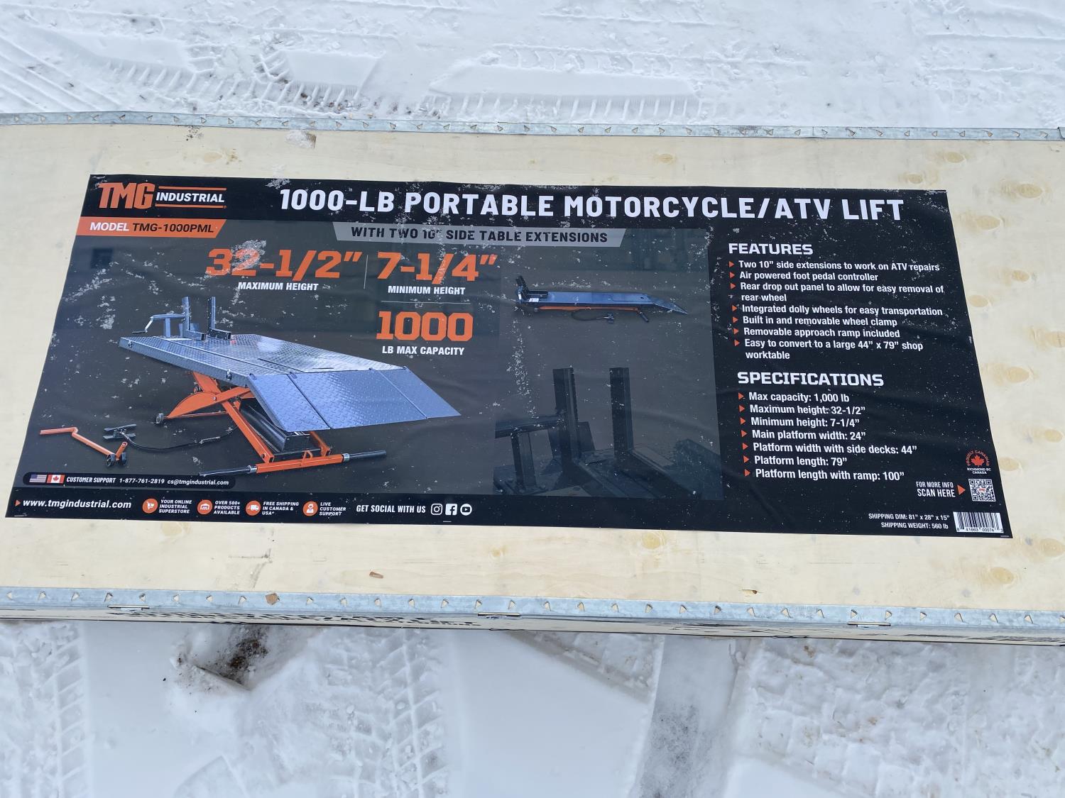 94 TMG Industrial TMG-1000PML 1000 lb Portable Motorcycle/ATV Lift (Unused)
