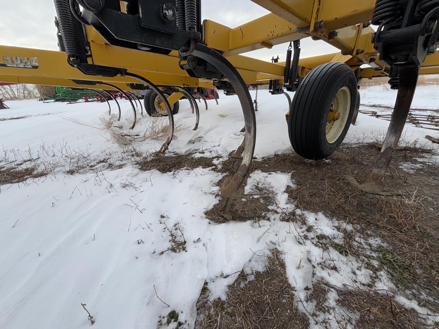 7 inch spacing, 11 inch sweeps, 5 ft diamond harrows, 9.5L-15 main frame tires