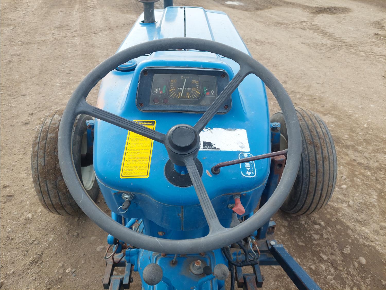 Ford 3.1 L 3 cylinder 50 HP, diesel engine, 8 speed Dual Range manual transmission, open station platform, 1 rear hydraulic outlets, 11L-15 front tires, 16.9-24 rear tires