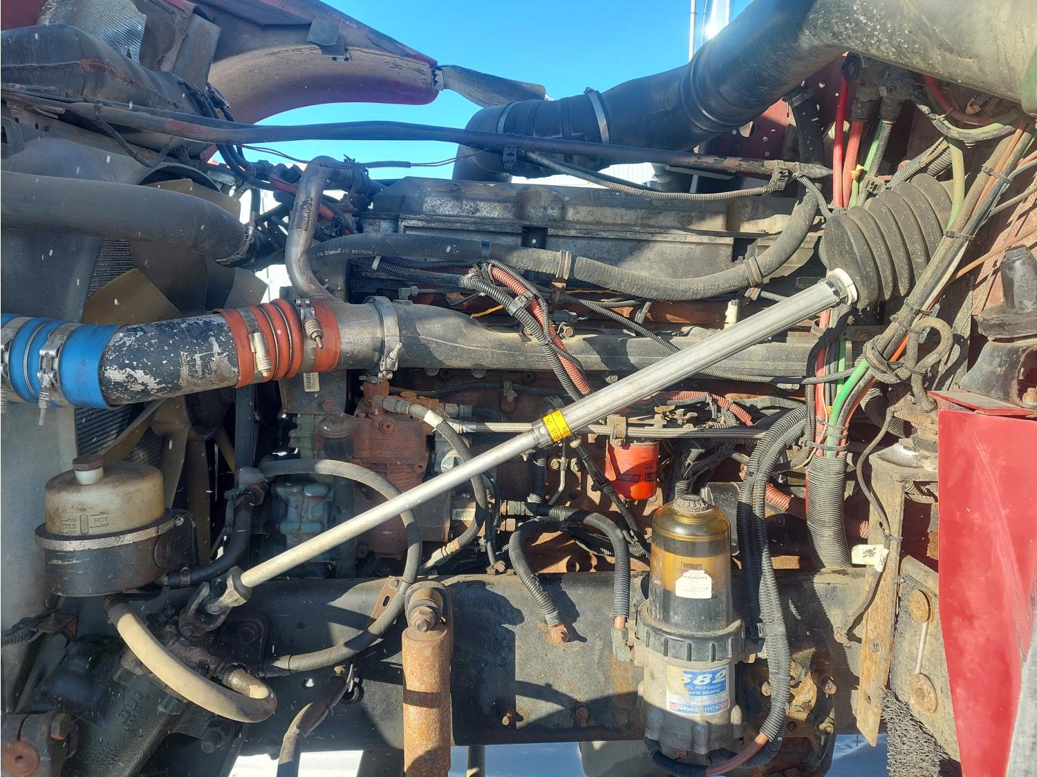 Detroit DDC 60 14.0 L 6 cylinder 515 HP engine, Webasto engine heater, engine brake, engine block heater, Eaton Fuller 18 speed transmission, flat top 60 inch sleeper, A/C, cruise control, air ride seats, air ride suspension, 14,000 lb front axle, 46,000 lb rear axles, 3 way diff locks, 3.91 ratio, 244 inch WB, single frame, all aluminum wheels, 11R24.5 tires