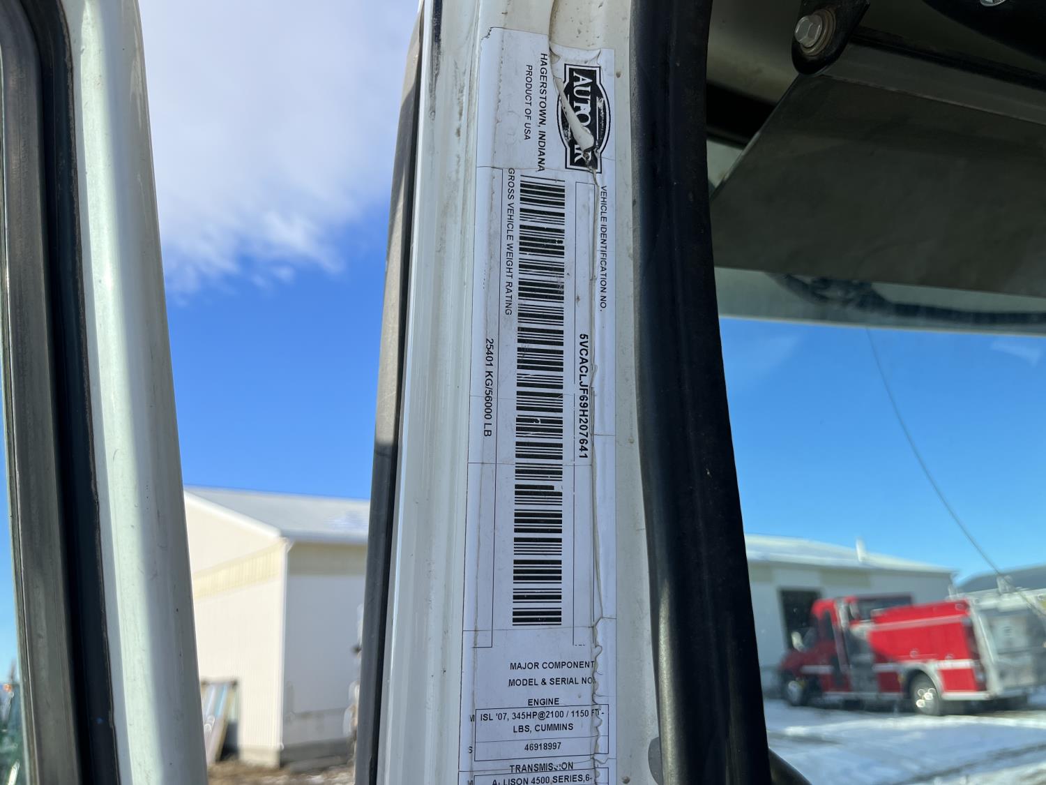Cummins ISL 345 HP diesel engine, Allison automatic transmission, Heil 612-3374 Box, 25 yard capacity , rubber block suspension, 16,000 lb front axle, 40,000 lb rear axles, 315/80R22.5 front tires, 11R22.5 rear tires