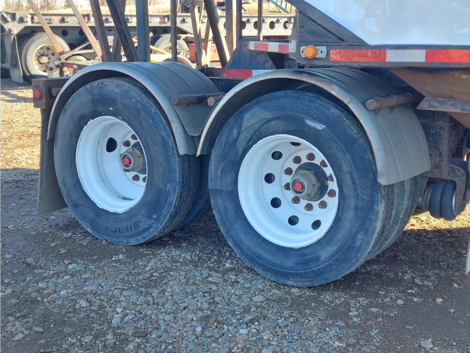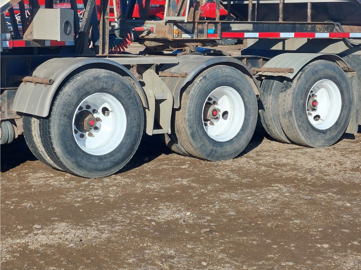 Michel's roll tarps, air ride suspension, air scales, 2 lift axles on lead, 1 lift axle on pup, 11R22.5 tires