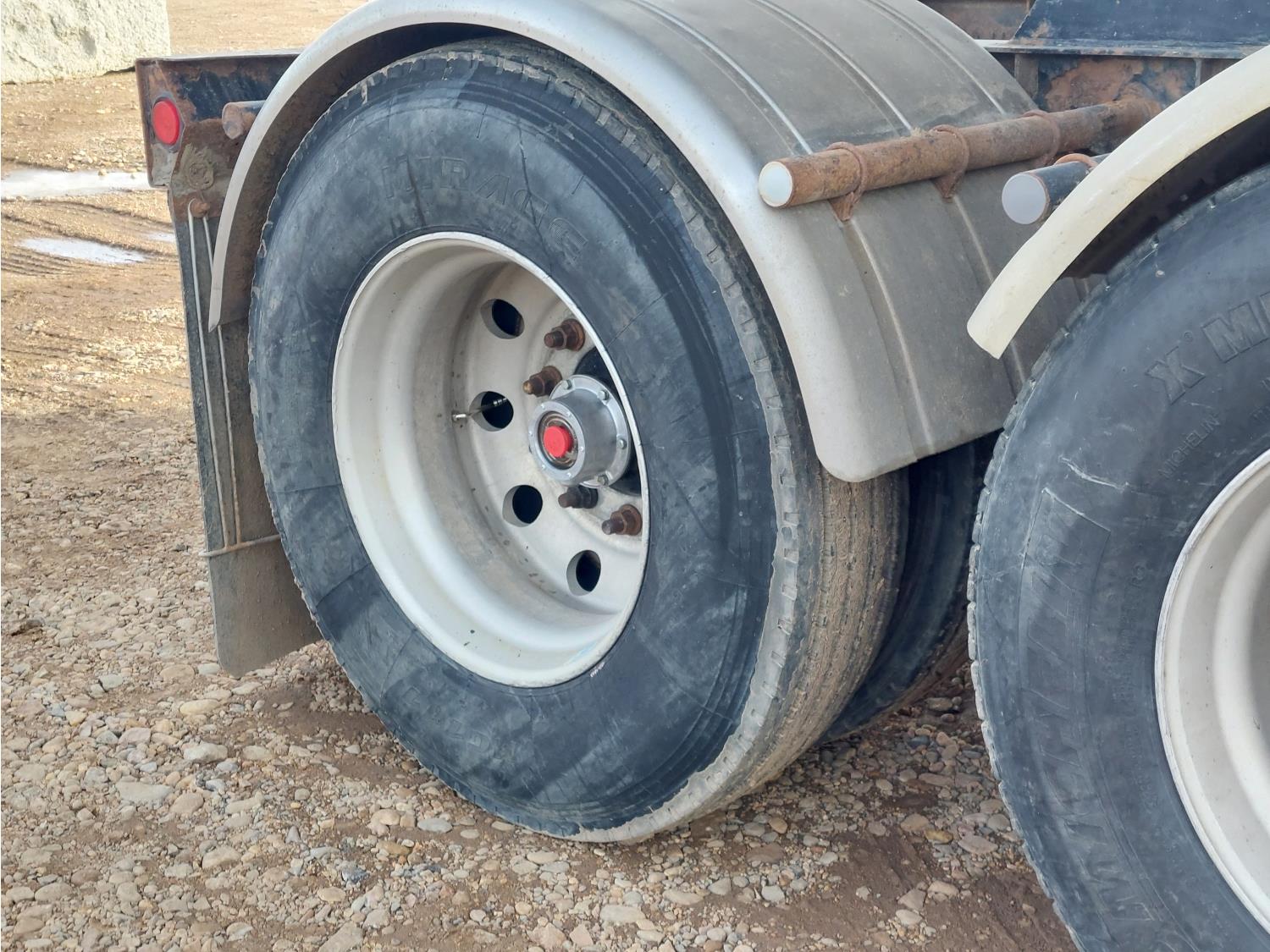 Michel's roll tarps, air ride suspension, air scales, 2 lift axles on lead, 1 lifts axle on pup, 11R22.5 tires