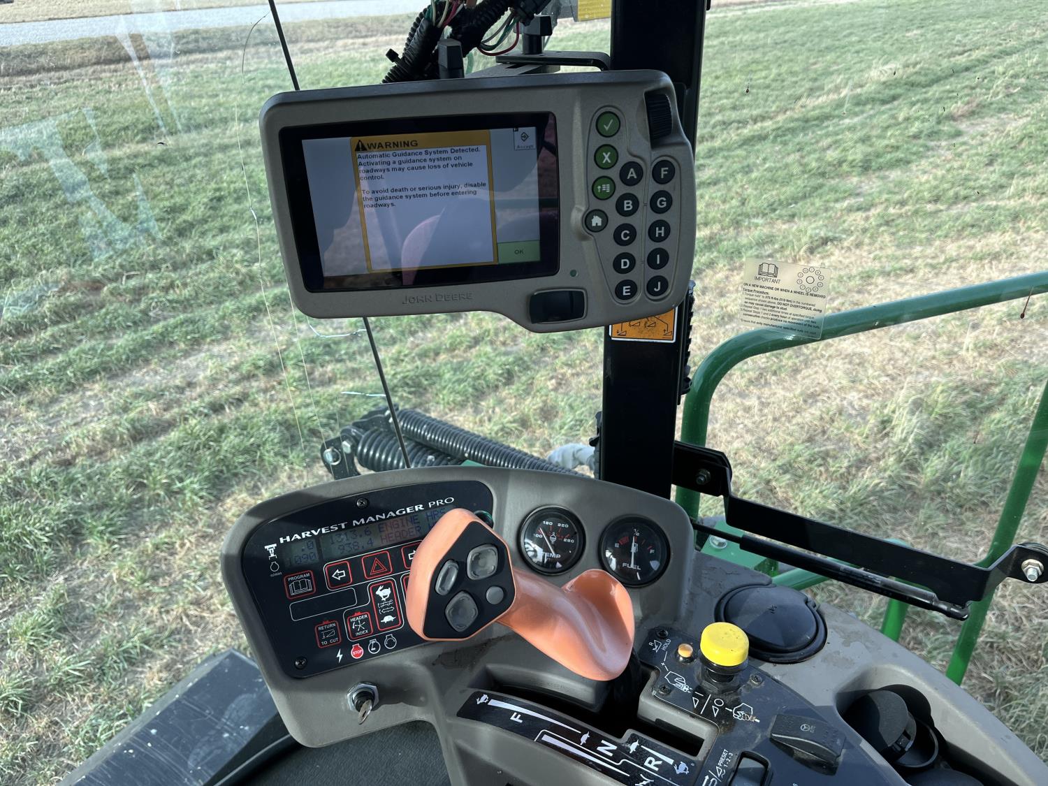 variable speed reel, auto header height, fore & aft, swath roller, A/C, air ride seat, buddy seat, monitor, AutoGuidance Steering, reversible operator station, Starfire 3000, 600/65R28 front tires, 16.5L-16.1 rear tires
