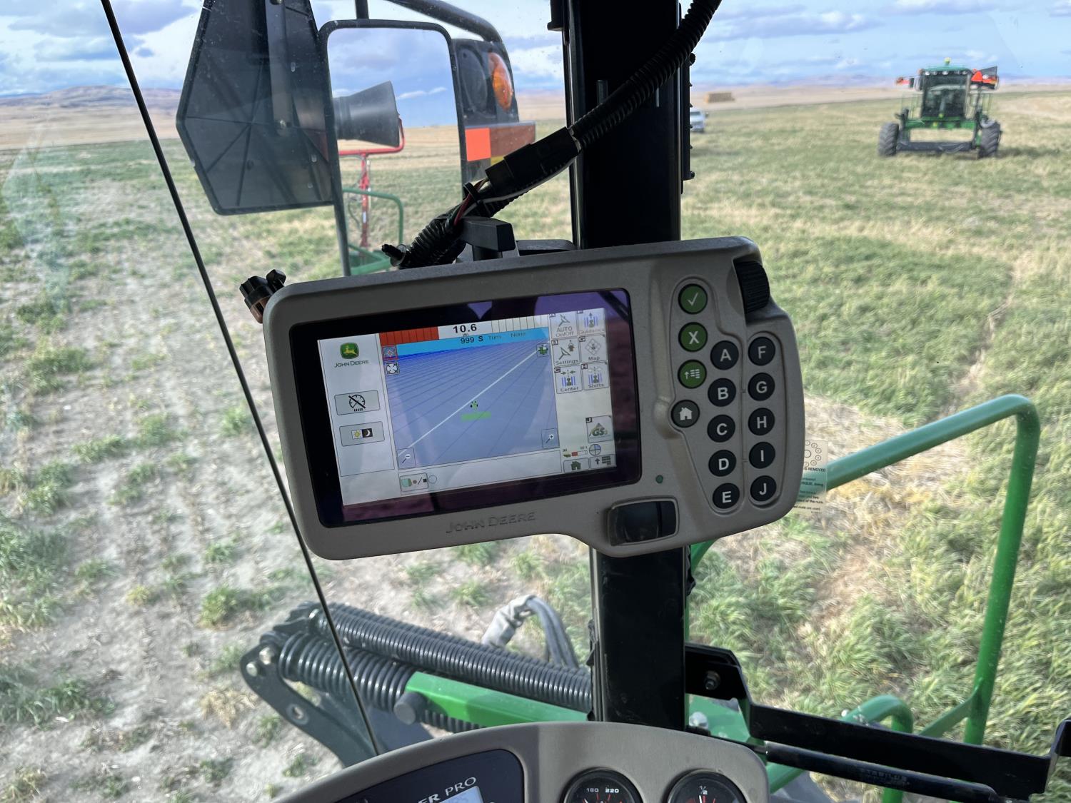 variable speed reel, auto header height, fore & aft, swath roller, A/C, air ride seat, buddy seat, monitor, AutoGuidance Steering, reversible operator station, Starfire 3000, 600/65R28 front tires, 16.5L16.1 rear tires