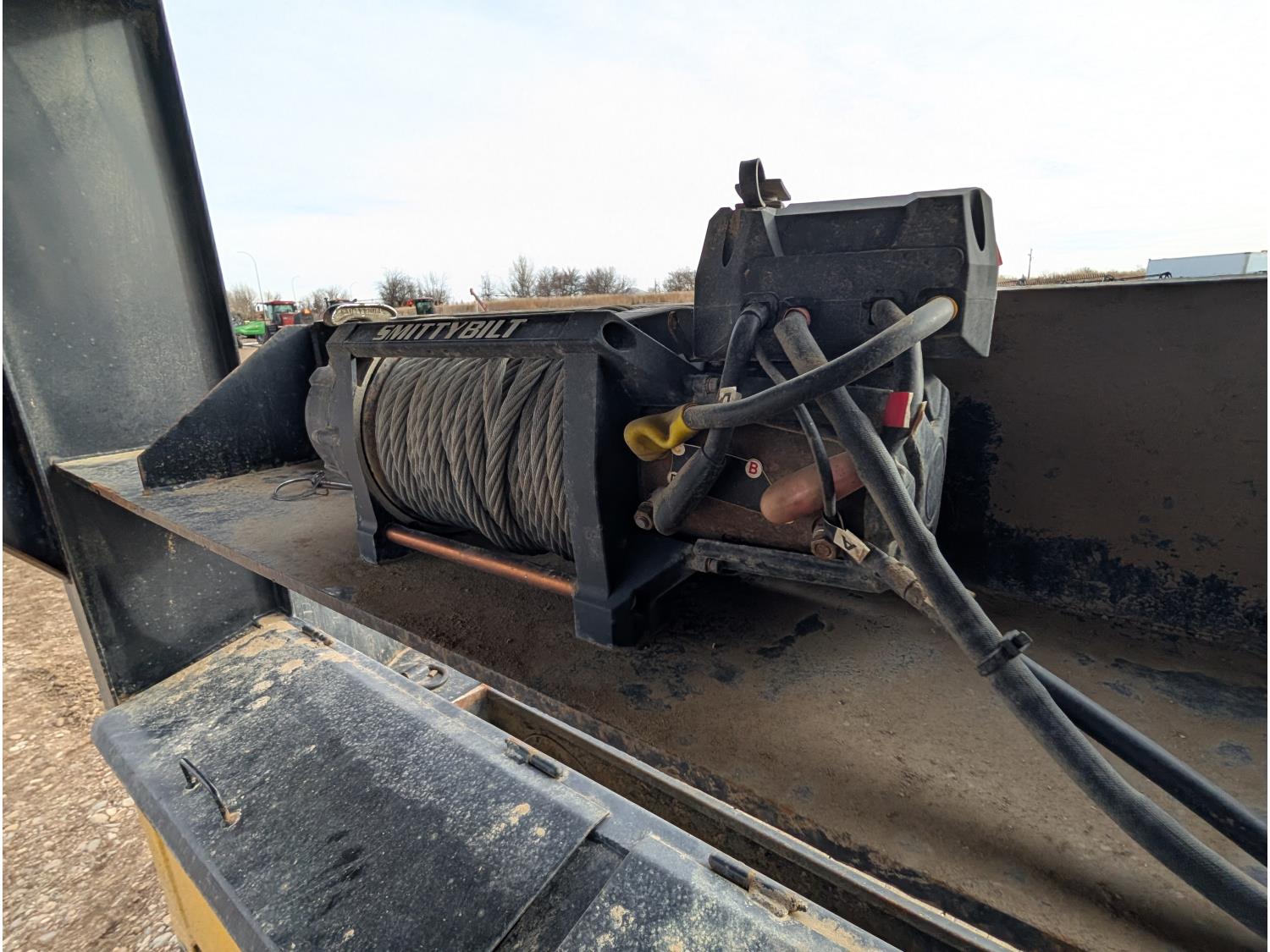 98 inch wide deck, 16 ft tilt deck, 8 ft top deck, wood deck, electric brakes, torsion suspension, Smittybilt X2O 17,500 lb steel cable winch, tool / storage box, rub rails, stake pockets, LED lights, hydraulic tilt controls, 7000 lb axles, 235/80R16 tires