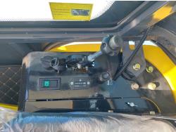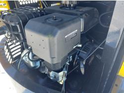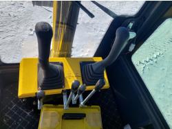 Enclosed cab, 15 HP gas engine, 16 inch dig bucket, manual thumb, 2 Ft 4 inch stick, 39 inch backfill blade, 7 inch rubber tracks
