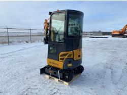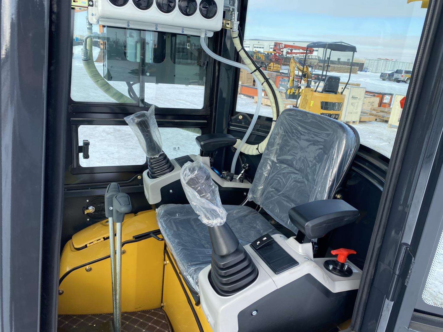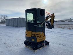Enclosed cab, A/C, 15 HP gas engine, 16 inch dig bucket, manual thumb, 2 Ft 3 inch stick, swing boom, 38 inch backfill blade, 7 inch rubber tracks