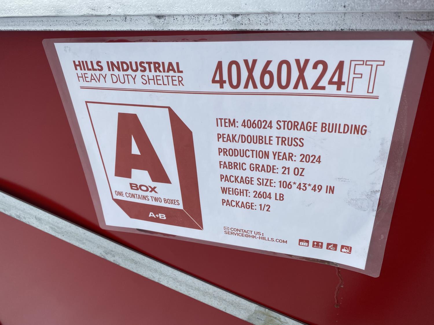 81 2024 Hills Industrial 40 Ft W X 60 Ft L X 24 Ft H Heavy Duty Shelter (Unused)