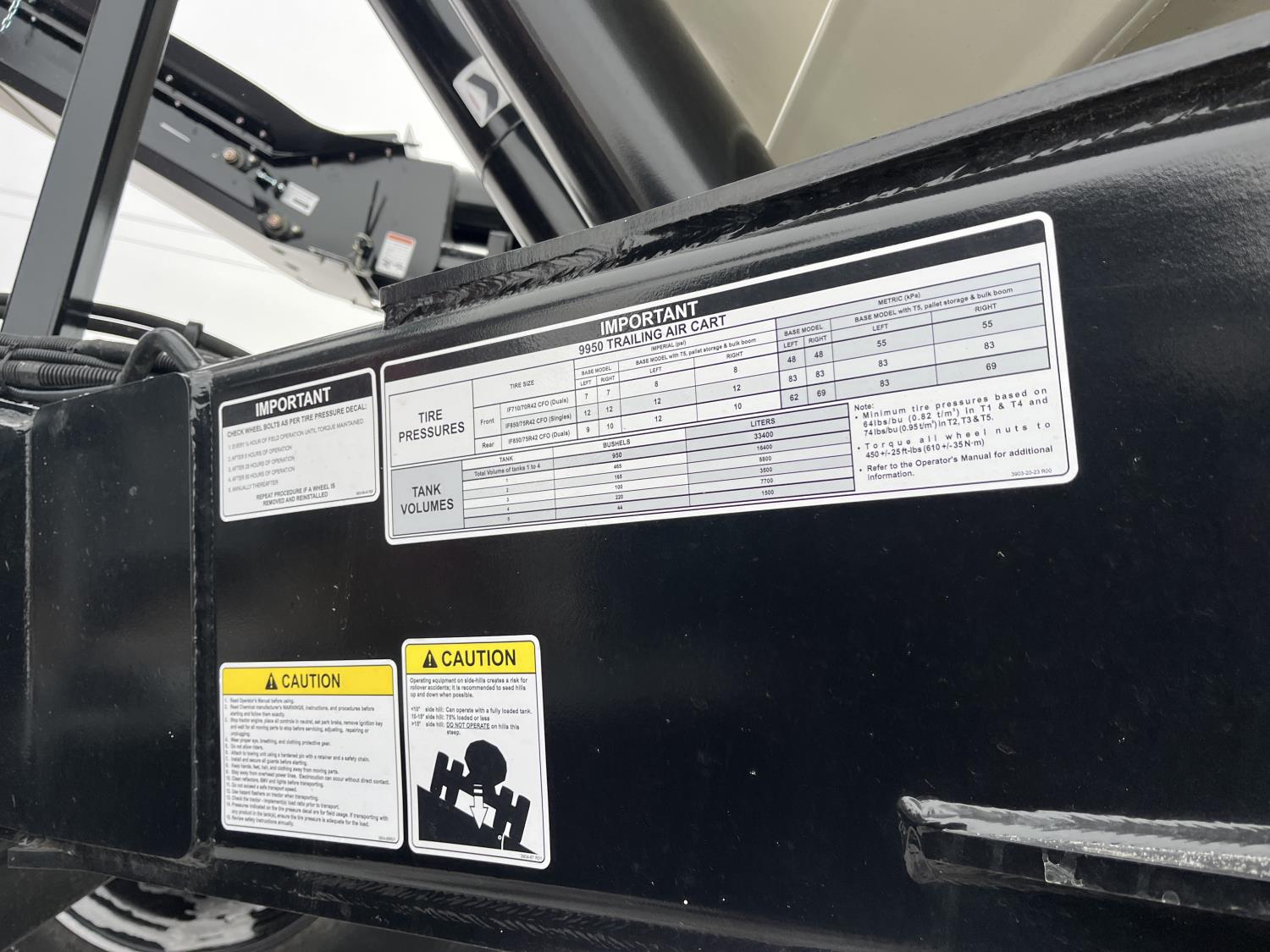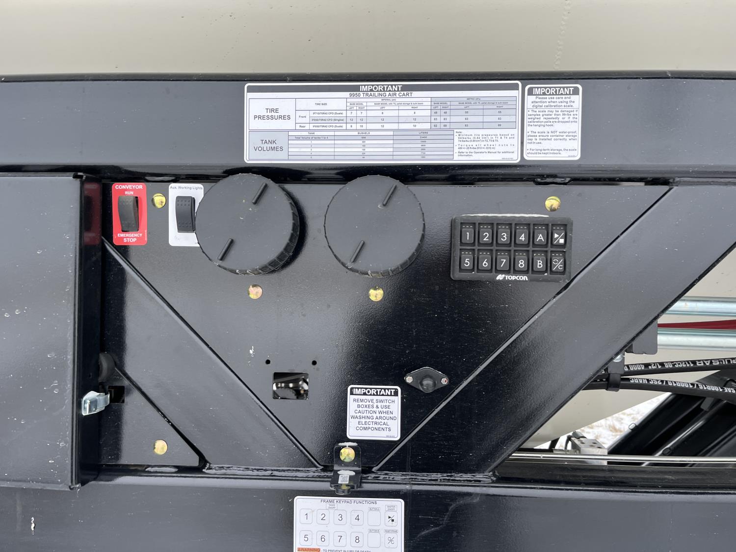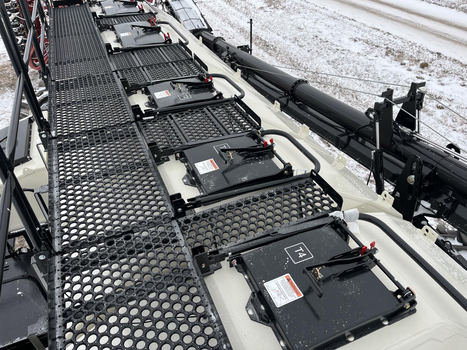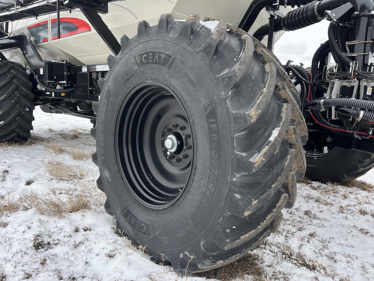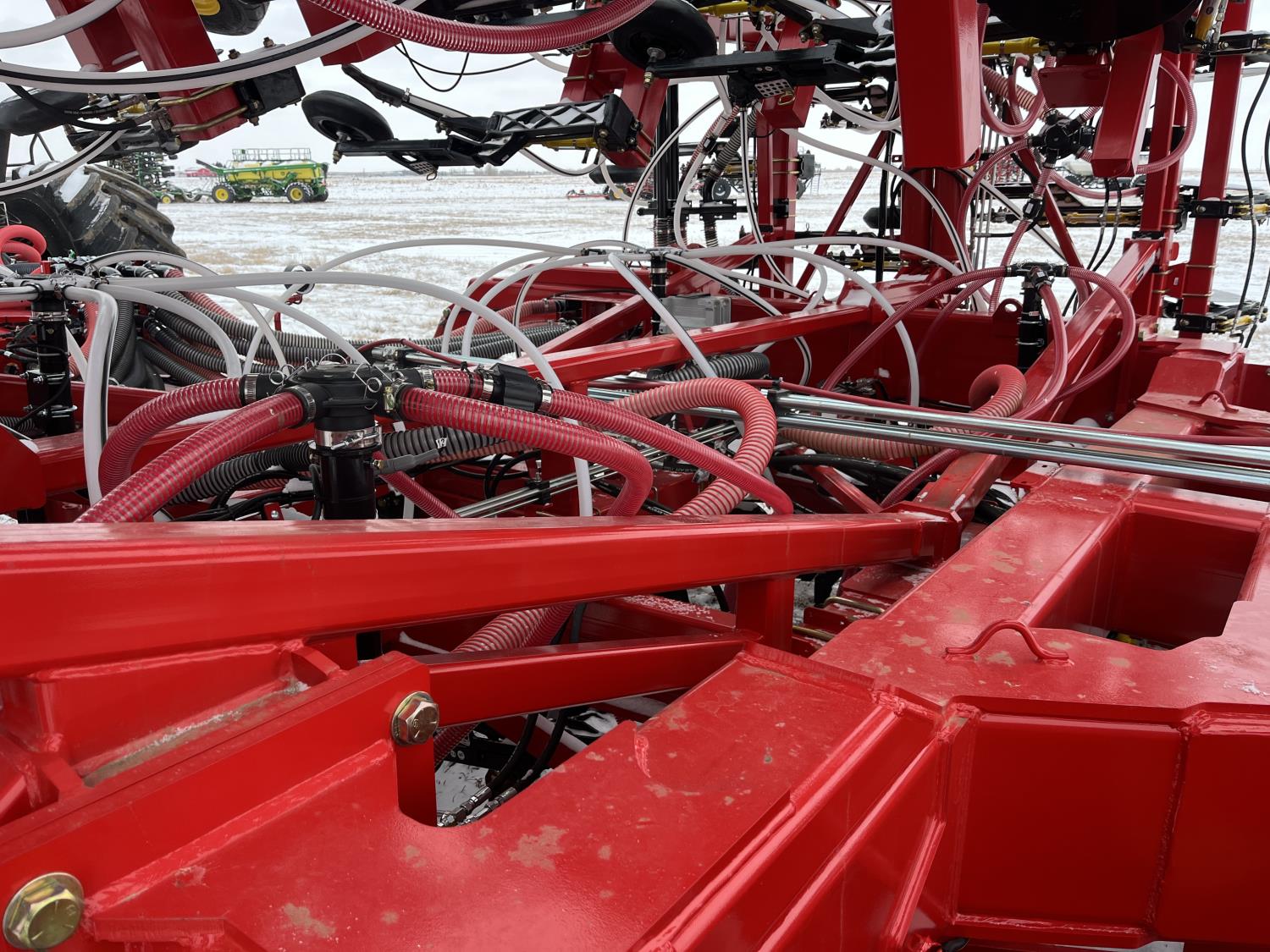 10 inch spacing, double shoot, single row GEN 73 openers, mid row banding, 4.5 inch rubber packers, seed monitor, blockage sensors, TopCon XD+ monitor, TopCon Apollo blockage sensors, Air Cart: 5 compartments, 15 inch loading conveyor, double fan, variable rate metering, sectional control, TNK 1 : 465 bushel, TNK 2 : 165 bushel, TNK 3 100 bushel, TNK 4 : 220 bushel, TNK 5 : 44 bushel, saddle tank, high capacity fans, individual tank scales, high float, isolation switch, 850/75R42 front tires, dual 850/75R42 rear tires