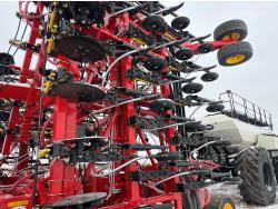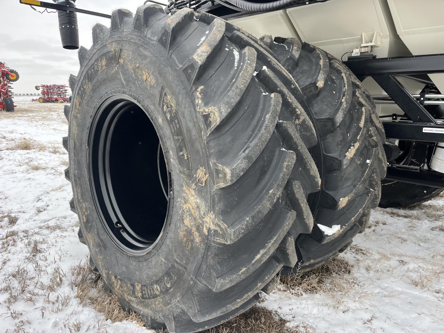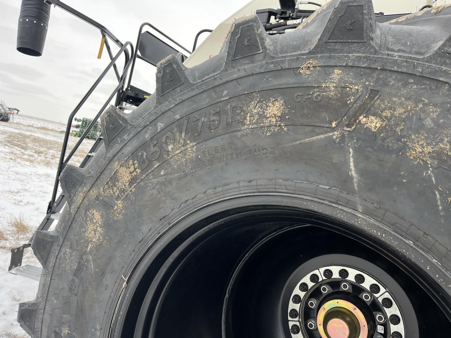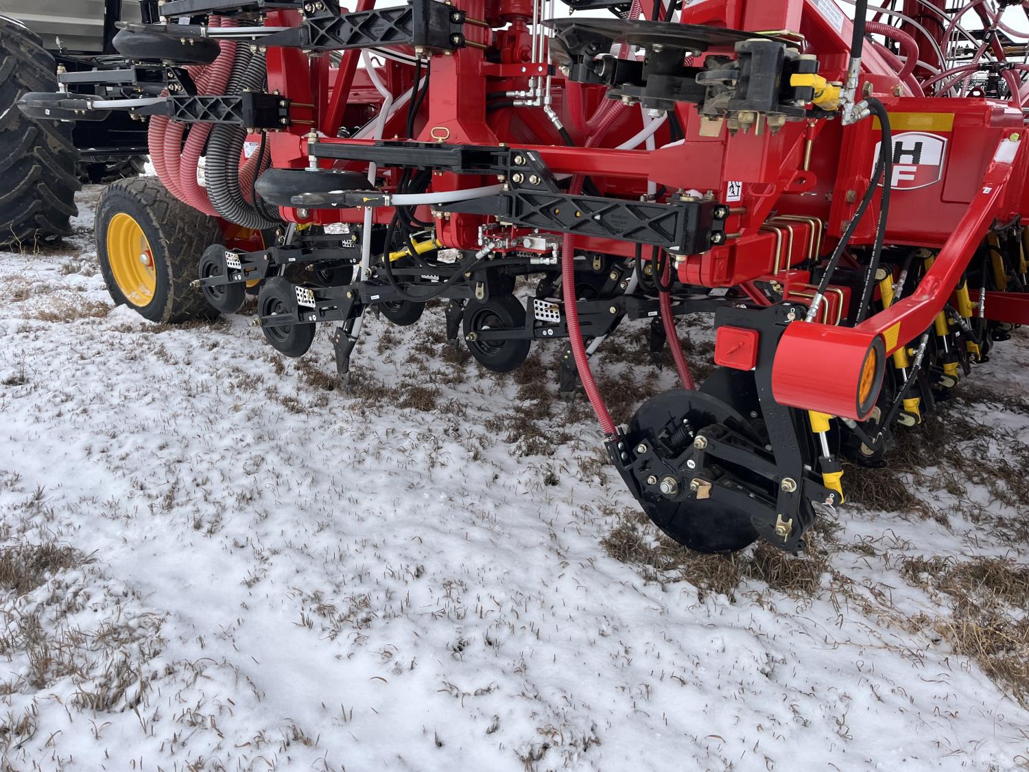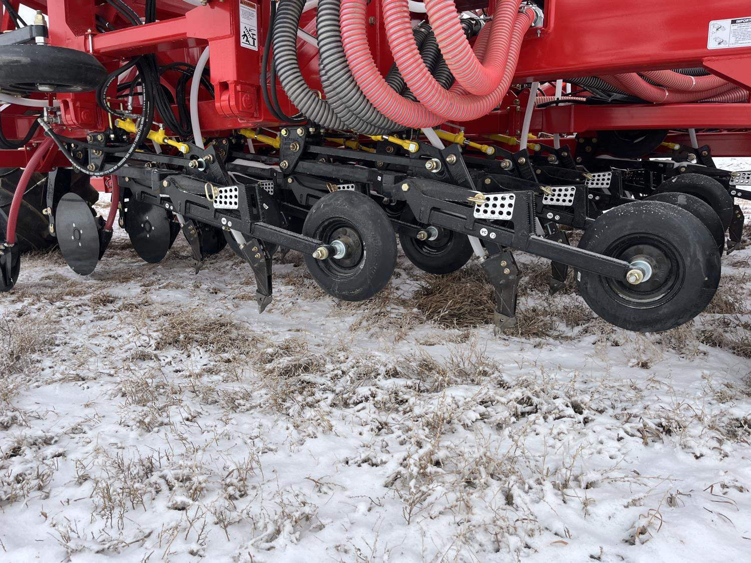 10 inch spacing, double shoot, single row GEN 73 openers, mid row banding, 4.5 inch rubber packers, seed monitor, blockage sensors, TopCon XD+ monitor, TopCon Apollo blockage sensors, Air Cart: 5 compartments, 15 inch loading conveyor, double fan, variable rate metering, sectional control, TNK 1 : 465 bushel, TNK 2 : 165 bushel, TNK 3 100 bushel, TNK 4 : 220 bushel, TNK 5 : 44 bushel, saddle tank, high capacity fans, individual tank scales, high float, isolation switch, 850/75R42 front tires, dual 850/75R42 rear tires