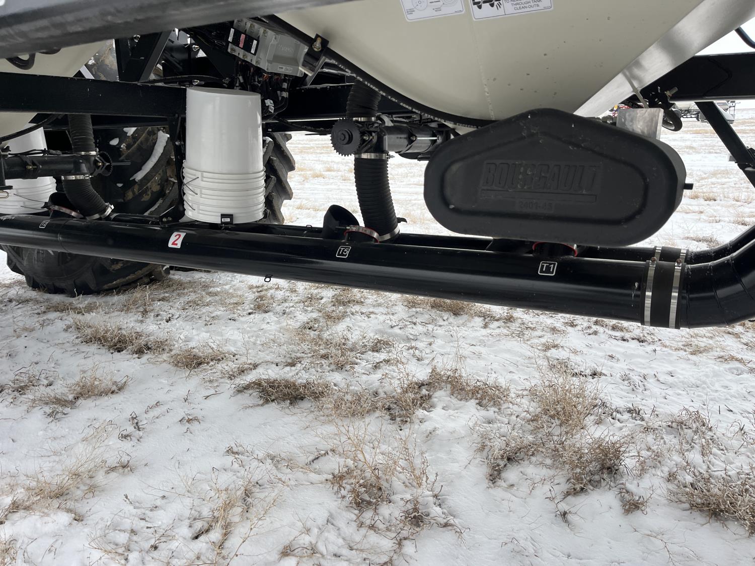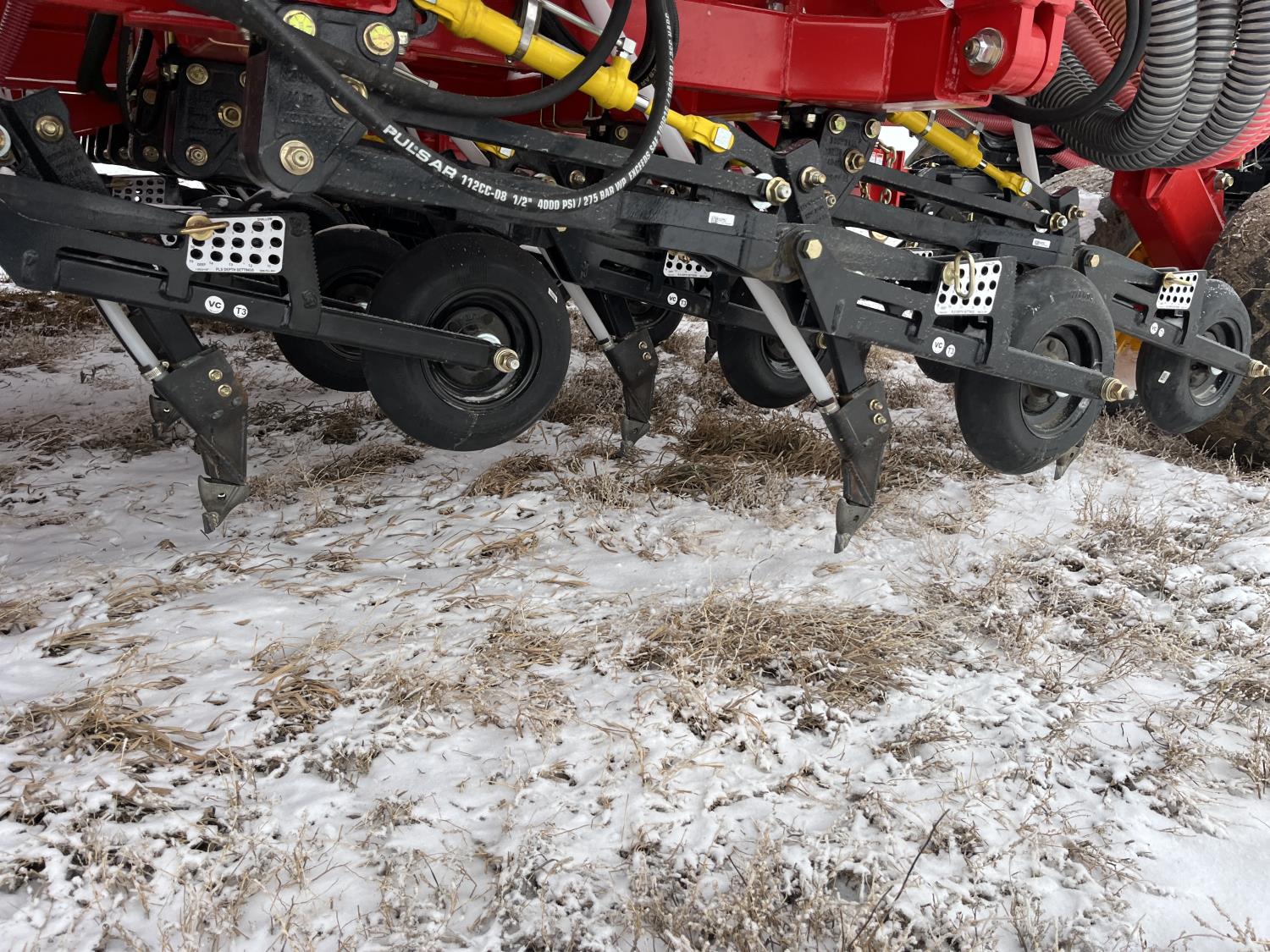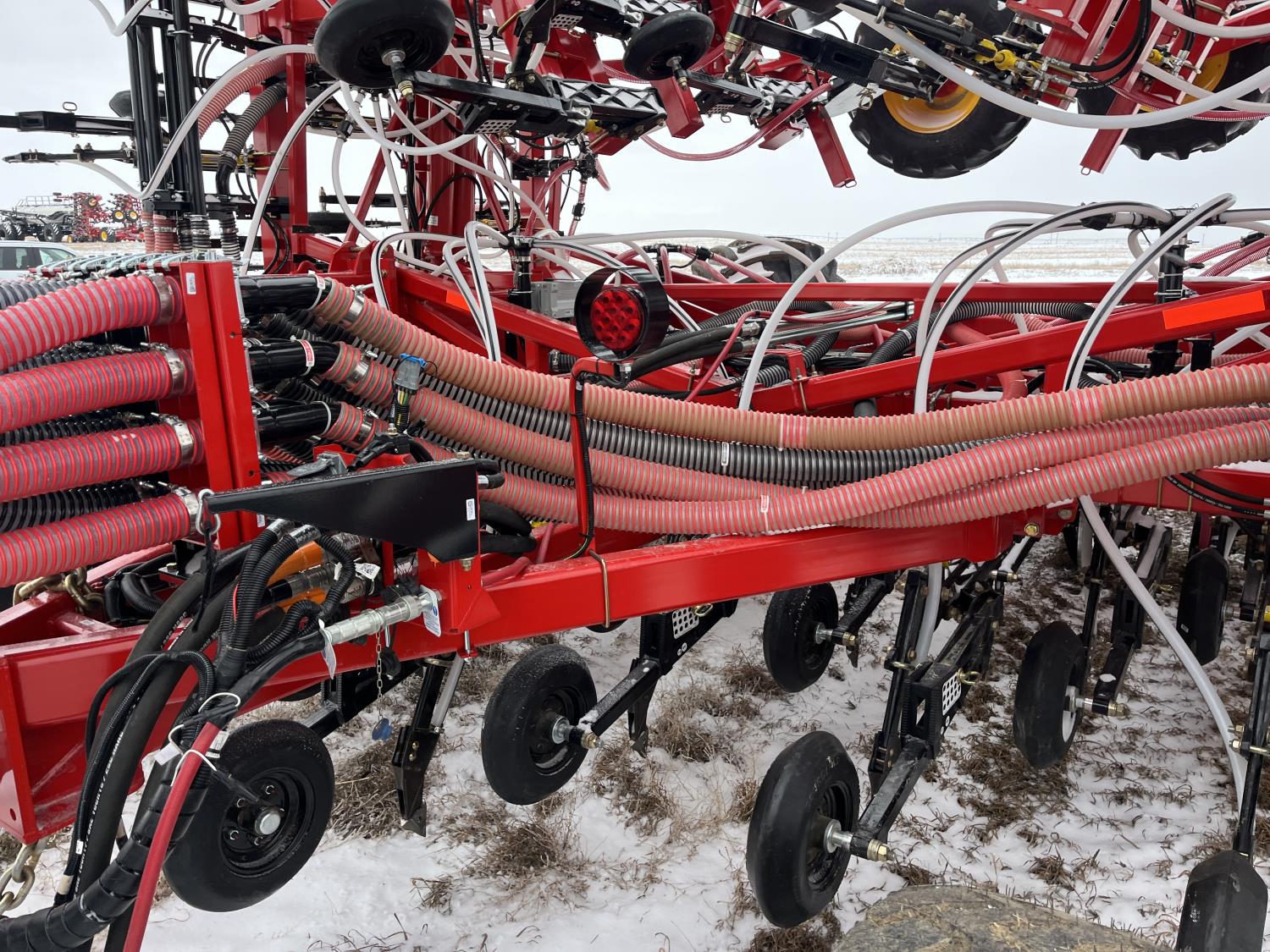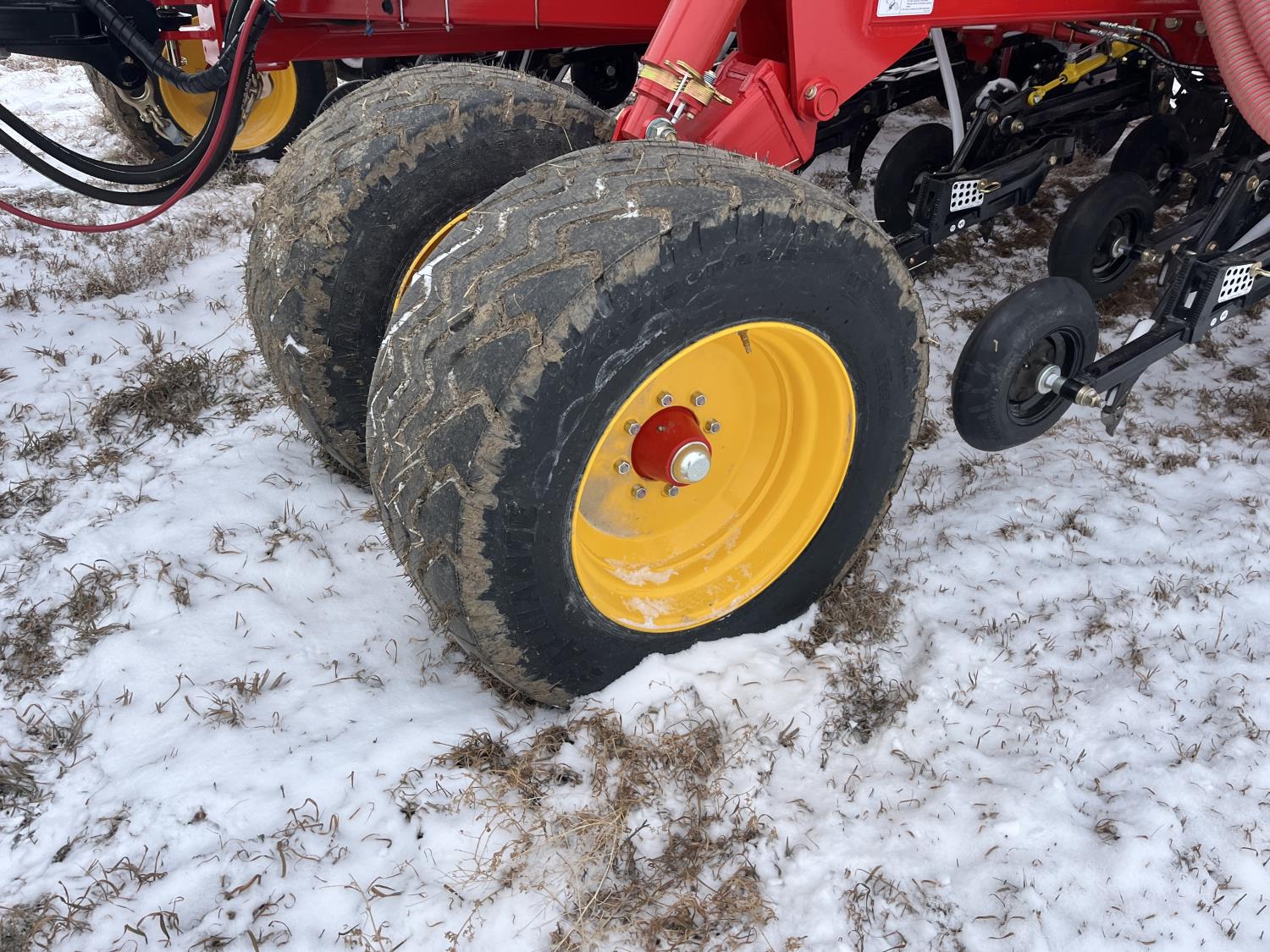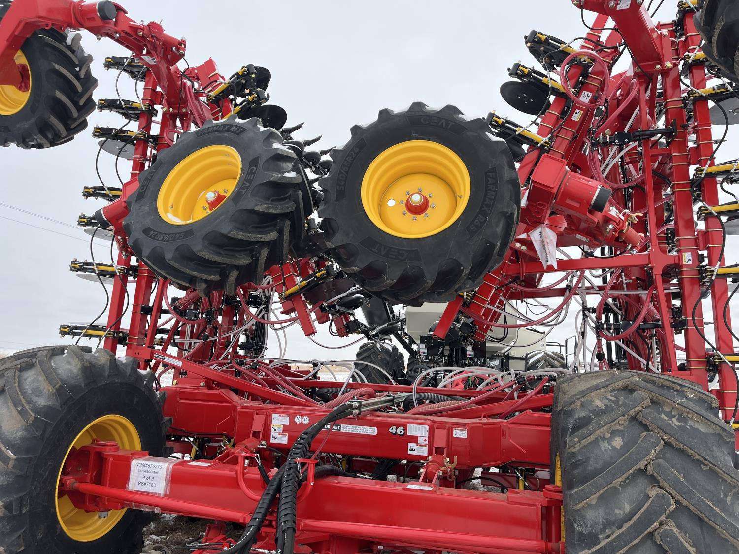 10 inch spacing, double shoot, single row GEN 73 openers, mid row banding, 4.5 inch rubber packers, seed monitor, blockage sensors, TopCon XD+ monitor, TopCon Apollo blockage sensors, Air Cart: 5 compartments, 15 inch loading conveyor, double fan, variable rate metering, sectional control, TNK 1 : 465 bushel, TNK 2 : 165 bushel, TNK 3 100 bushel, TNK 4 : 220 bushel, TNK 5 : 44 bushel, saddle tank, high capacity fans, individual tank scales, high float, isolation switch, 850/75R42 front tires, dual 850/75R42 rear tires