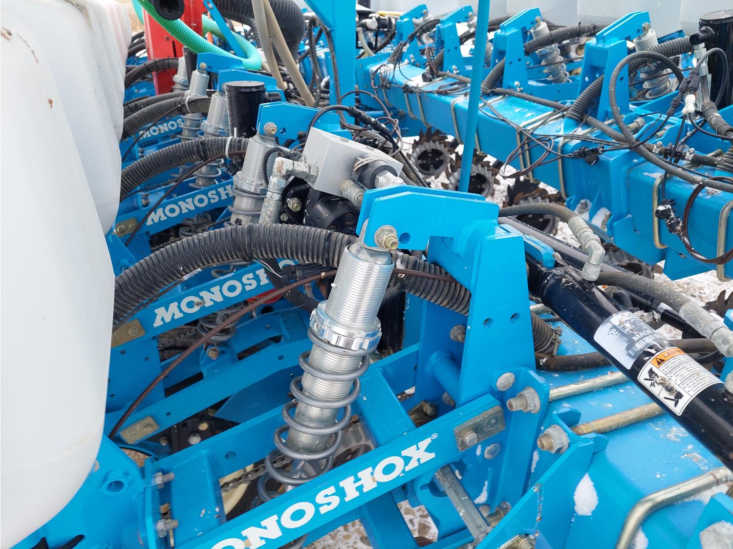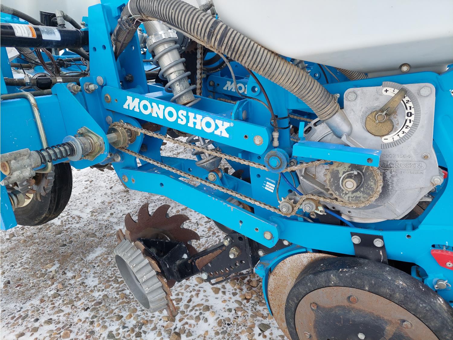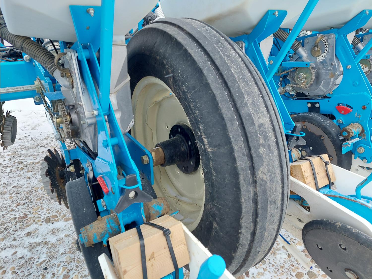 22 inch space, ISO monitoring, traditional low till, 15 to 30 inch inter row spacing, 15 inch double opener discs, 6212A discs installed, 11.5 inch press wheel, double spring with additional pressure spring, 7.50-20SL tires