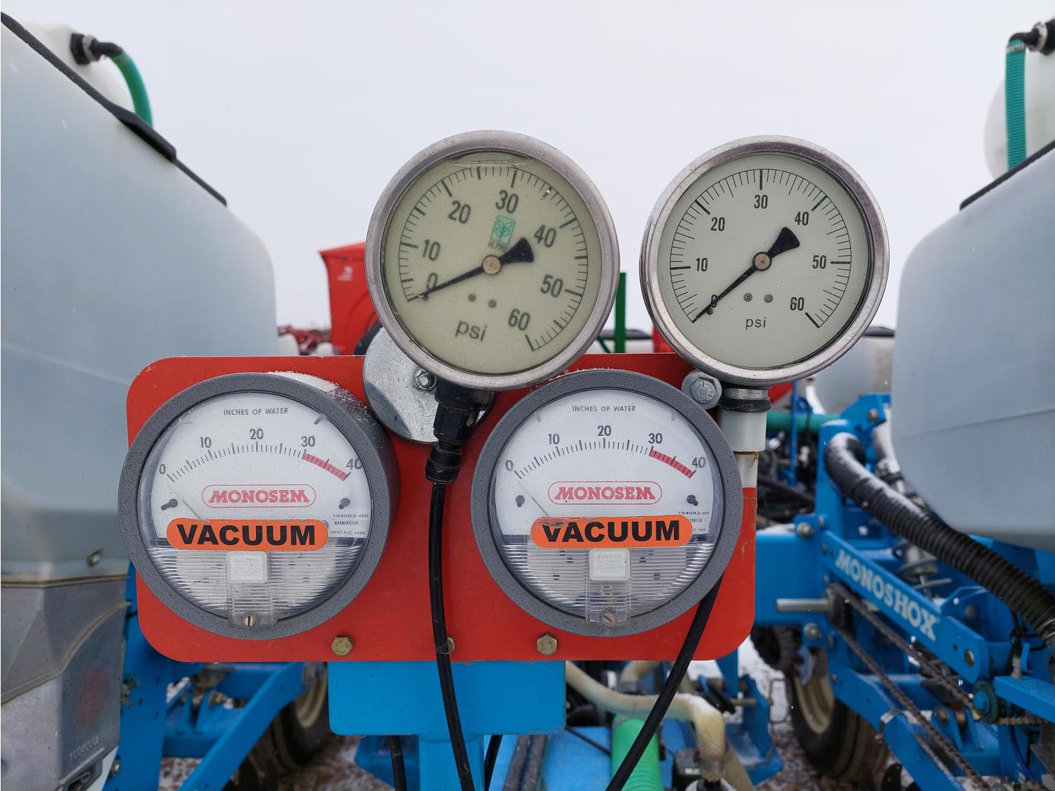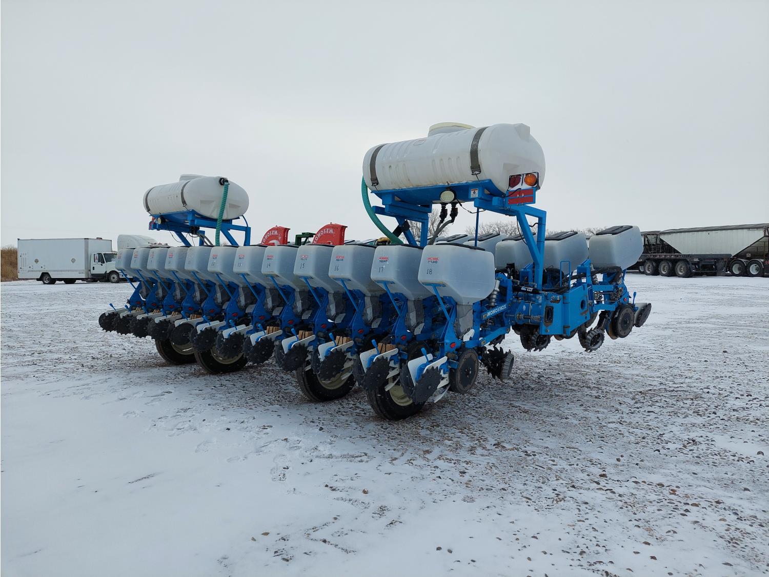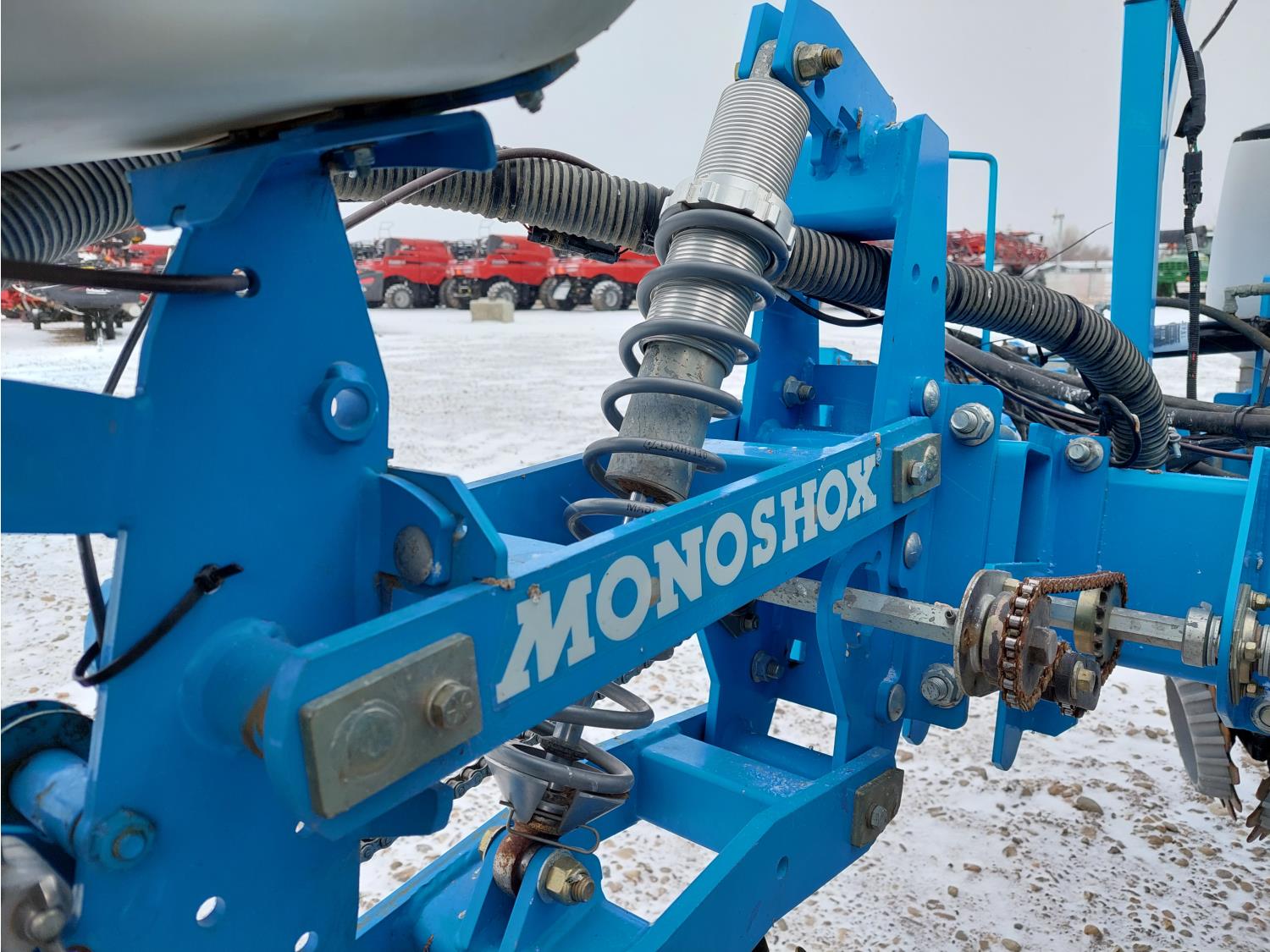 22 inch space, ISO monitoring, traditional low till, 15 to 30 inch inter row spacing, 15 inch double opener discs, 6212A discs installed, 11.5 inch press wheel, double spring with additional pressure spring, 7.50-20SL tires