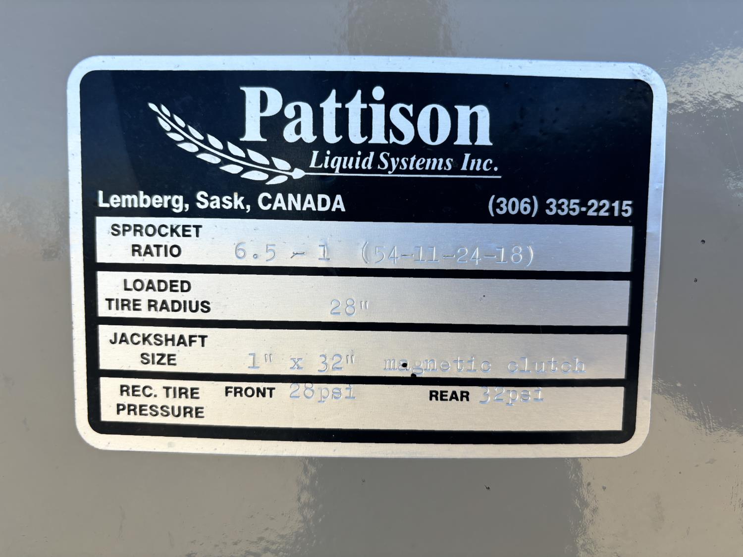 John Blue ground driven pump, 6.5-1 sprocket ratio, 750/65R26 rear tires, 21.5-16.1L front tires