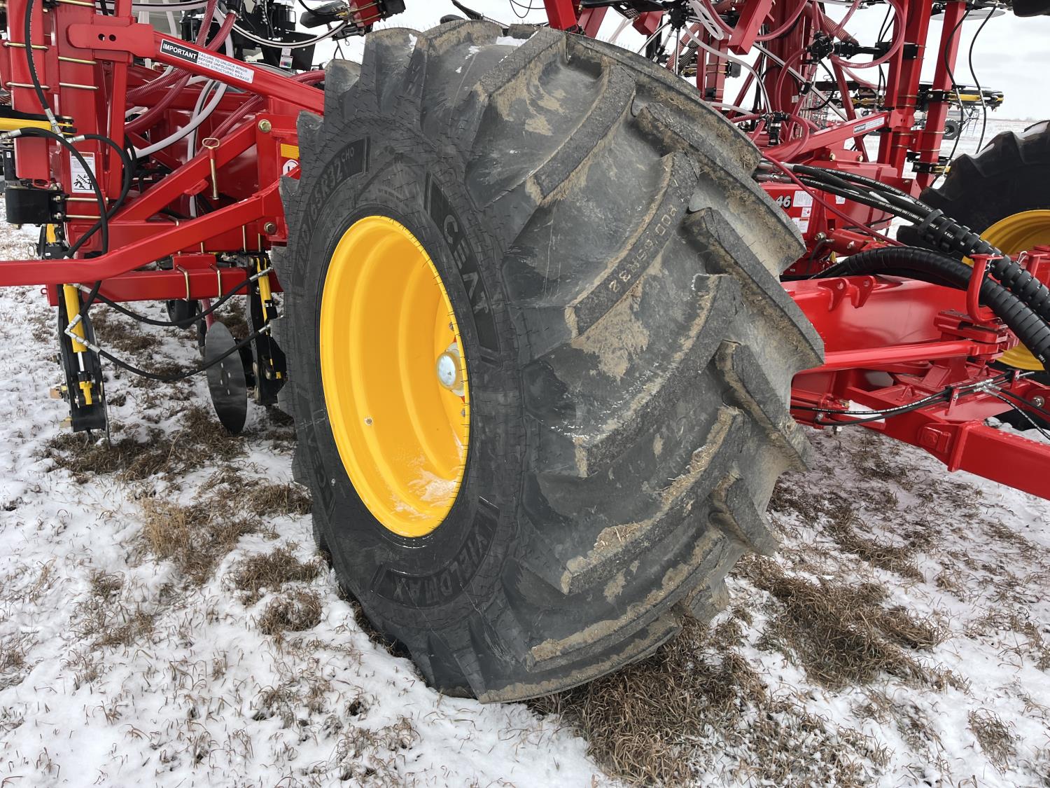 10 inch spacing, double shoot, single row GEN 73 openers, mid row banding, 4.5 inch rubber packers, seed monitor, blockage sensors, TopCon XD+ monitor, TopCon Apollo blockage sensors, Air Cart: 5 compartments, 15 inch loading conveyor, double fan, variable rate metering, sectional control, TNK 1 : 465 bushel, TNK 2 : 165 bushel, TNK 3 100 bushel, TNK 4 : 220 bushel, TNK 5 : 44 bushel, saddle tank, high capacity fans, individual tank scales, high float, isolation switch, 850/75R42 front tires, dual 850/75R42 rear tires