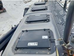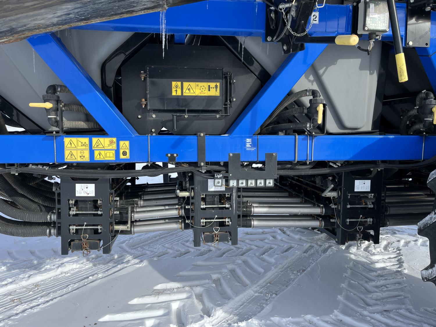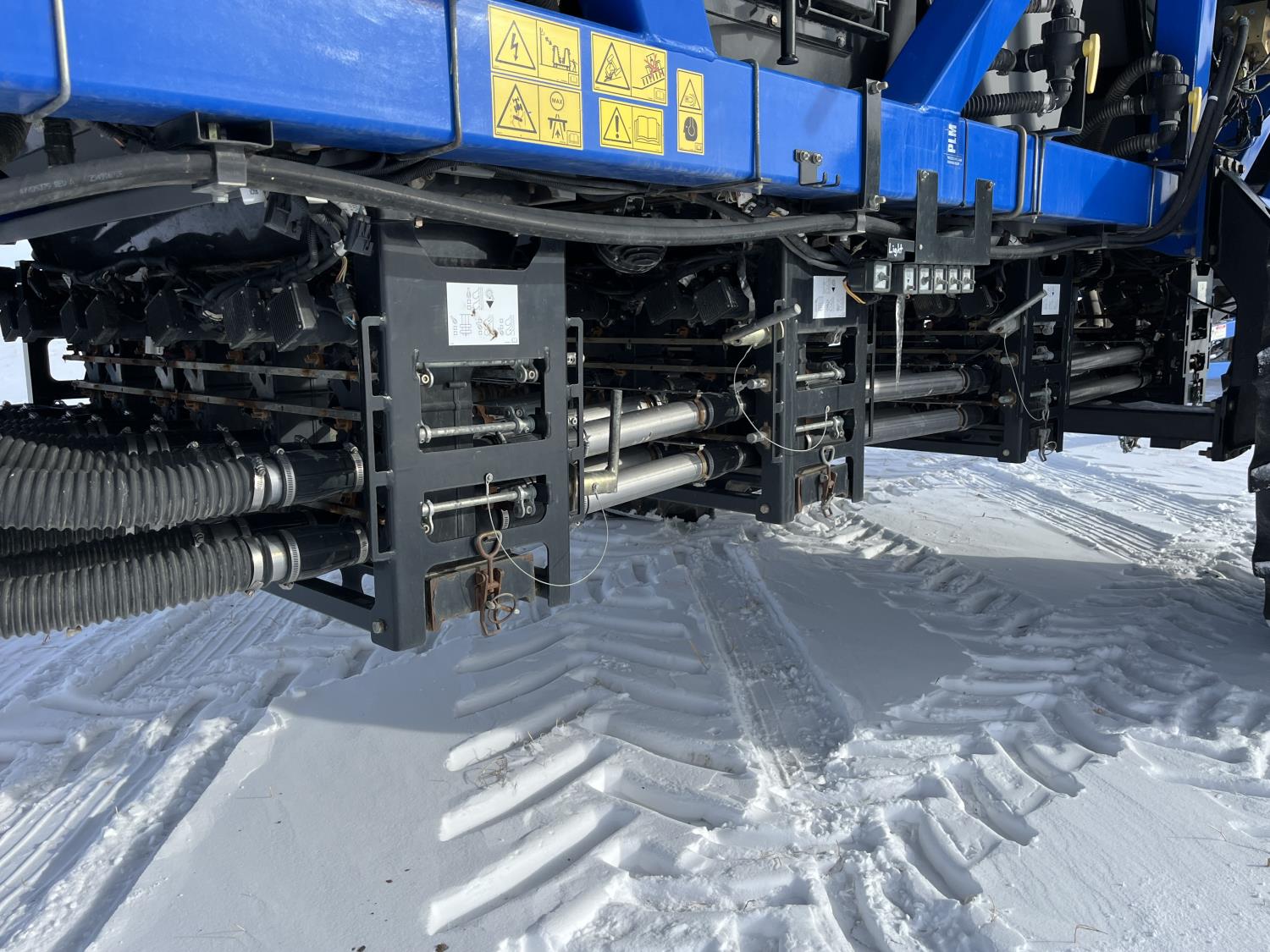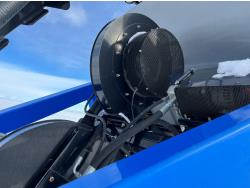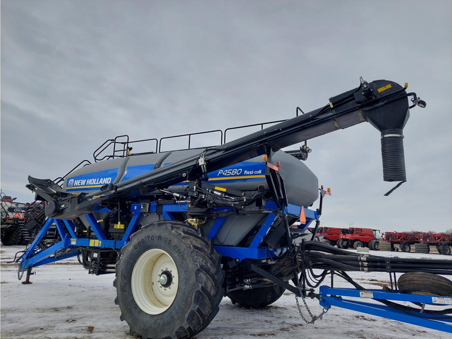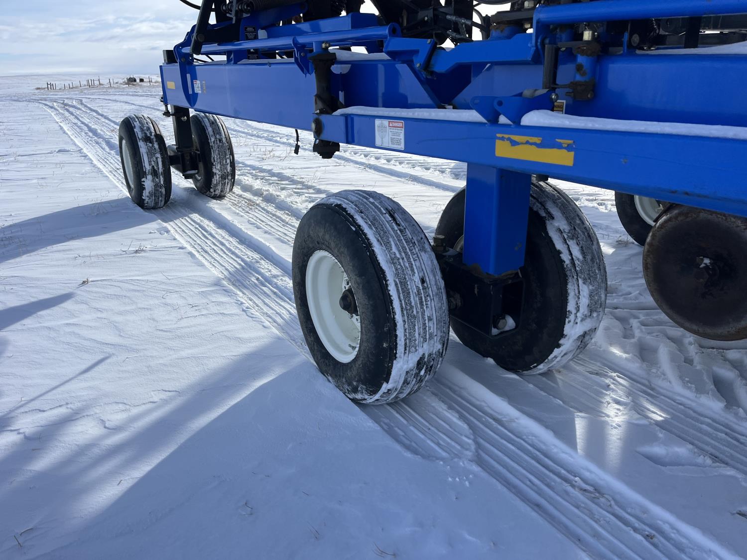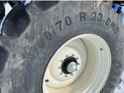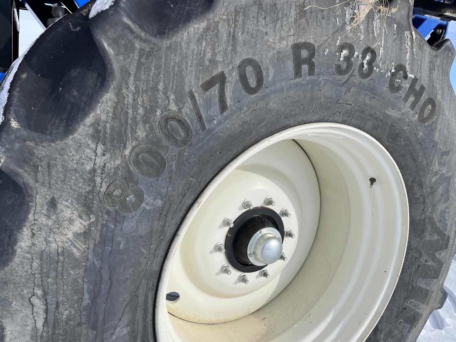 10 inch spacing, double shoot 3.5 inch Dutch openers, 4.5 inch steel packers, seed monitor, Air Cart: 4 compartments, 15 inch loading conveyor, double fan, sectional control, 800/70R33 tires, 30,100 acres seeded on cart, approx 45,000 acres seeded on drill, canola tank, New Holland Intelliview monitor