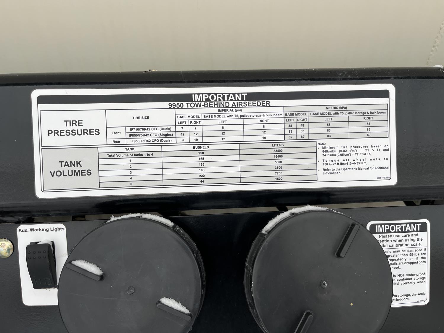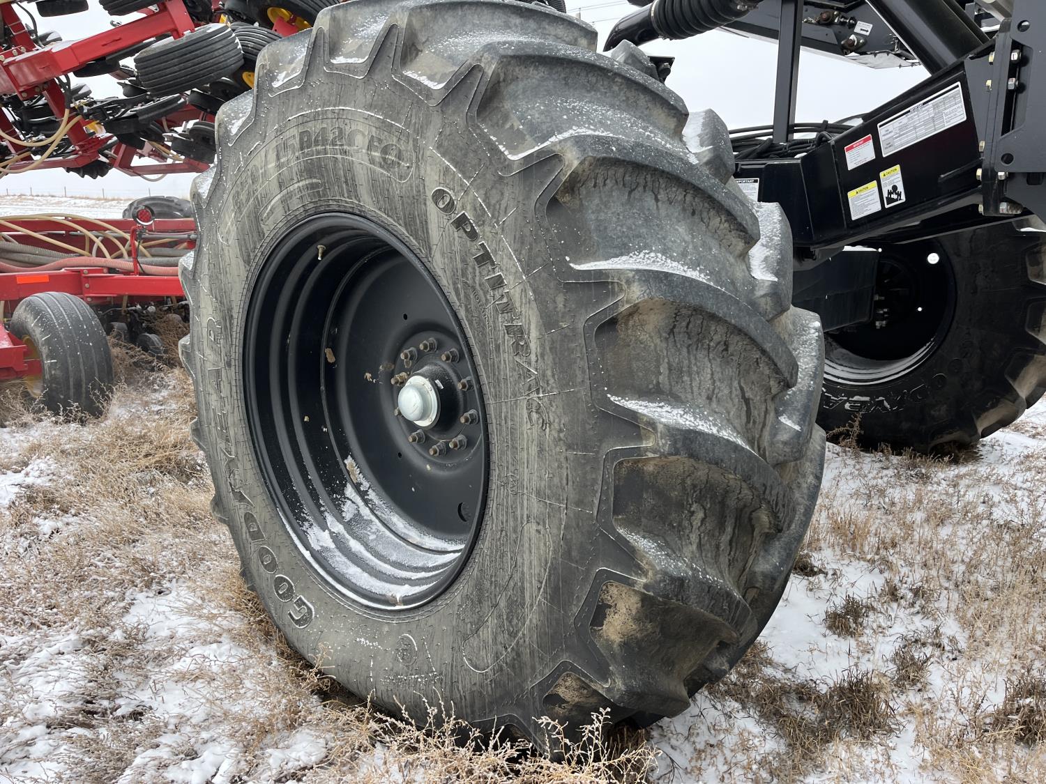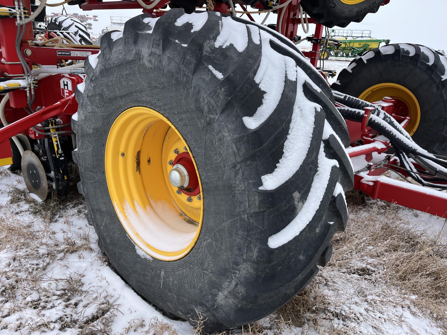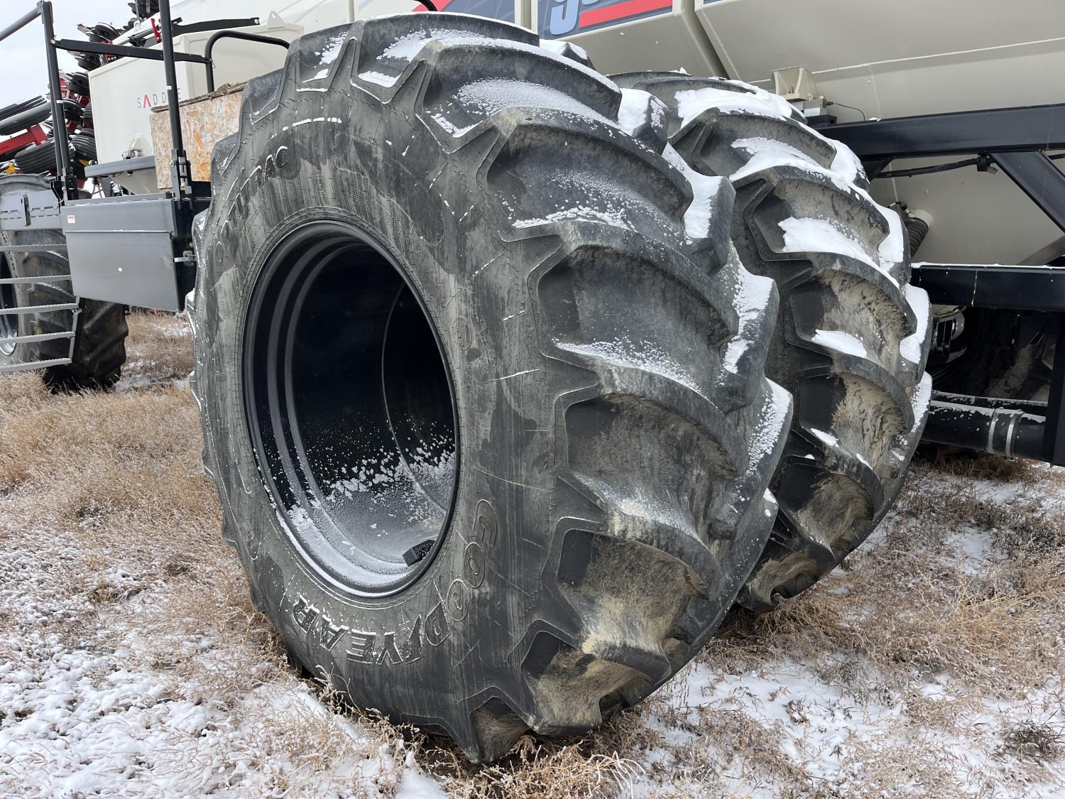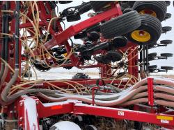 10 inch spacing, double shoot, single row openers, mid row banding, 4.5 inch rubber packers, seed monitor, blockage sensors, TopCon X35 monitor, 5 tank metering with scales, saddle tank, tank cameras, Air Cart: 5 compartments, 15 inch loading conveyor, double fan, variable rate metering, sectional control, TNK 1 : 465 bushel, TNK 2 : 165 bushel, TNK 3 : 100 bushel, TNK 4 : 220 bushel, TNK 5 : 44 bushel, saddle tank, high float, MRB III, TopCon Apollo blockage, high capacity fan, wide gauge wheels, pack master plus lift master, approximately 15,000 acres seeded , 850/75R42 front tires, dual 850/75R42 rear tires