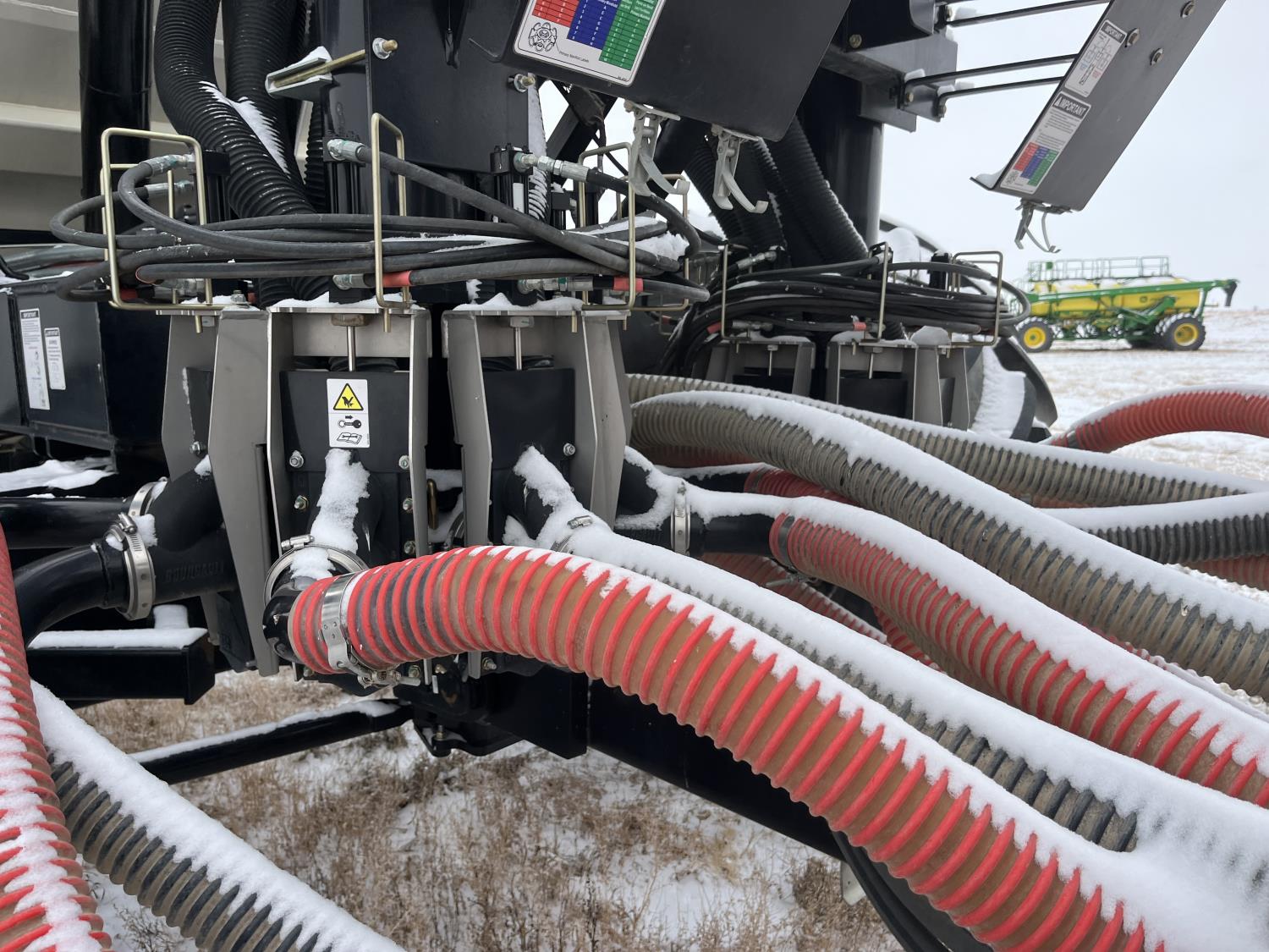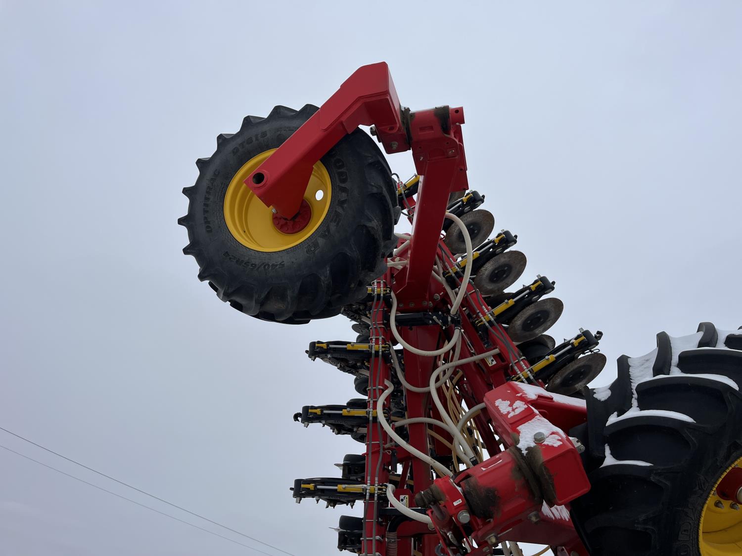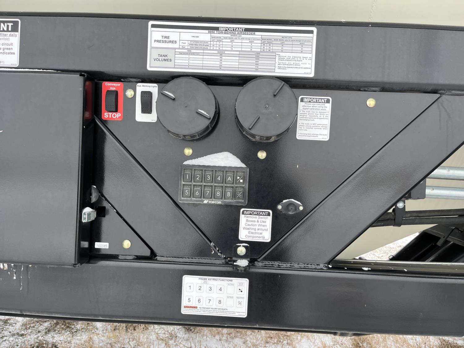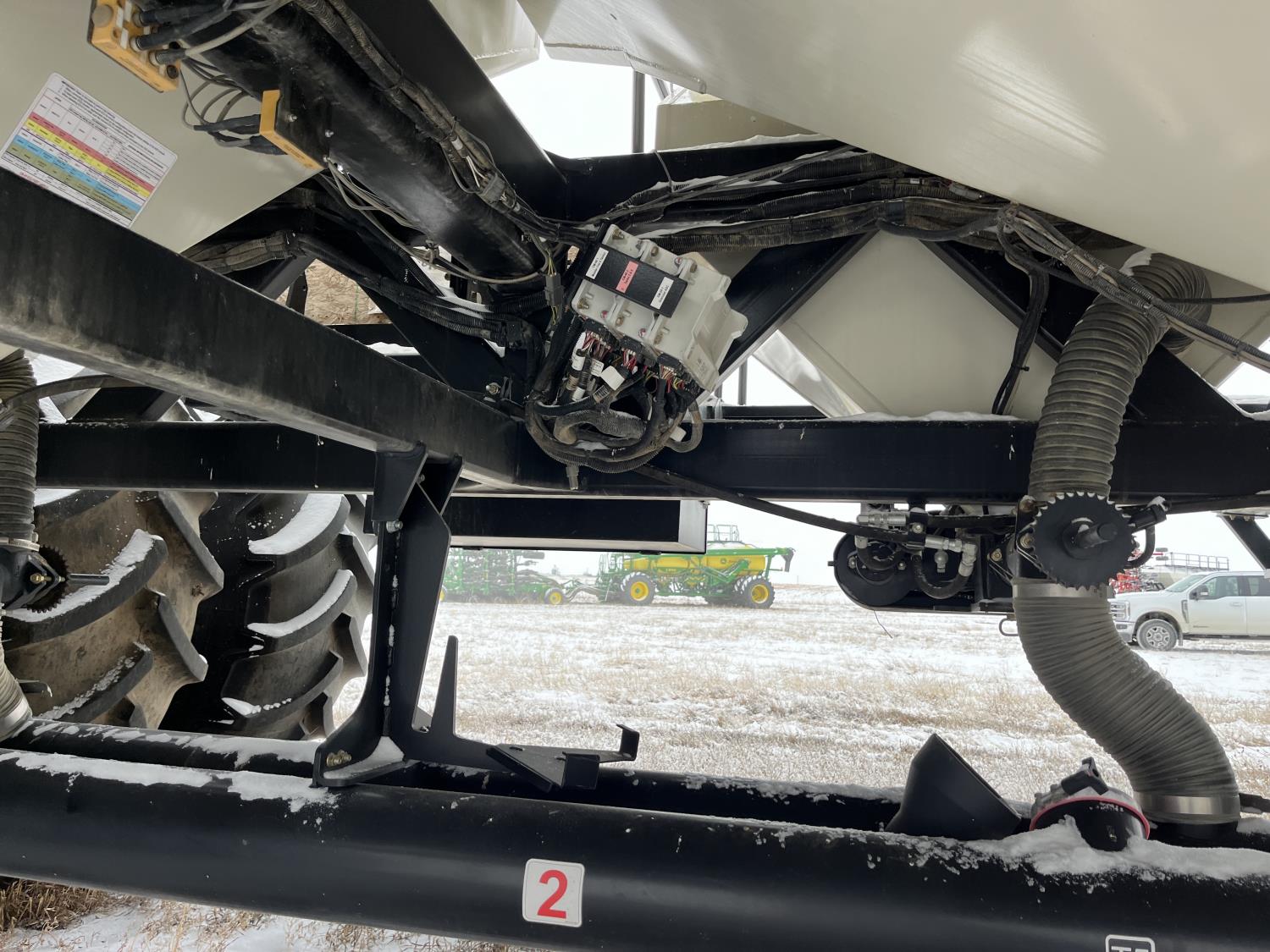 10 inch spacing, double shoot, single row openers, mid row banding, 4.5 inch rubber packers, seed monitor, blockage sensors, TopCon X35 monitor, 5 tank metering with scales, saddle tank, tank cameras, Air Cart: 5 compartments, 15 inch loading conveyor, double fan, variable rate metering, sectional control, TNK 1 : 465 bushel, TNK 2 : 165 bushel, TNK 3 : 100 bushel, TNK 4 : 220 bushel, TNK 5 : 44 bushel, saddle tank, high float, MRB III, TopCon Apollo blockage, high capacity fan, wide gauge wheels, pack master plus lift master, approximately 15,000 acres seeded , 850/75R42 front tires, dual 850/75R42 rear tires