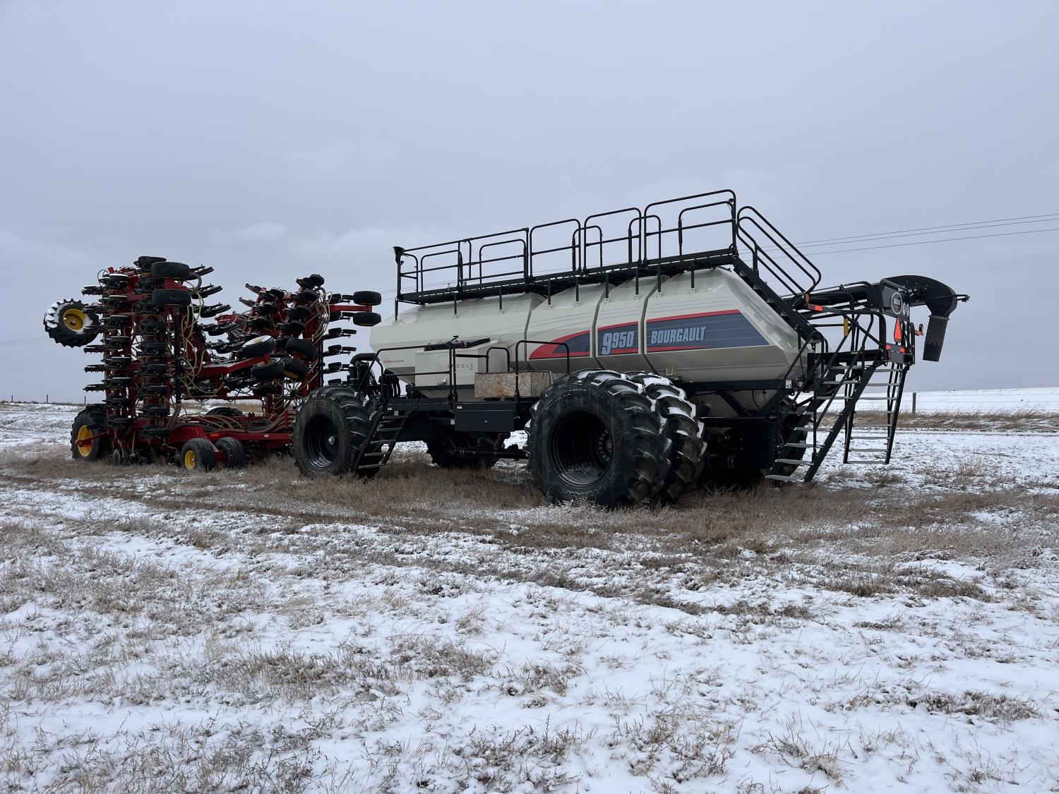 418 2022 Bourgault 3820 PLR 70 Ft Air Drill with 2022 Bourgault 9950 Tow Behind Air Cart
