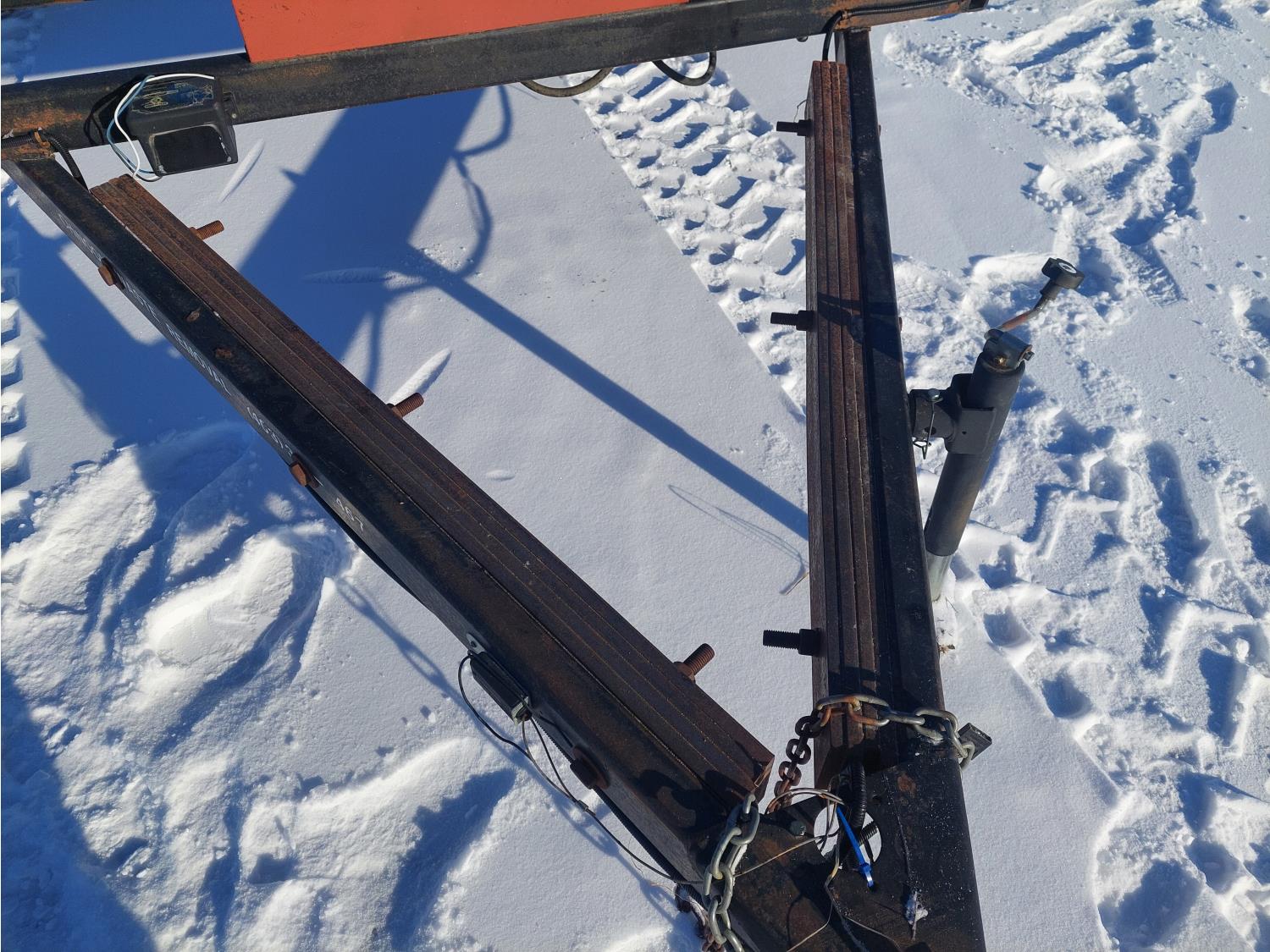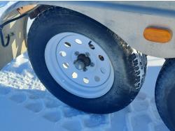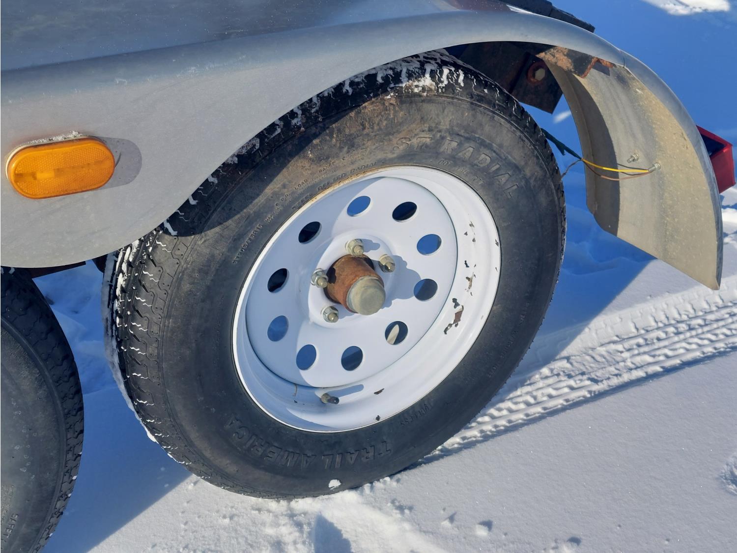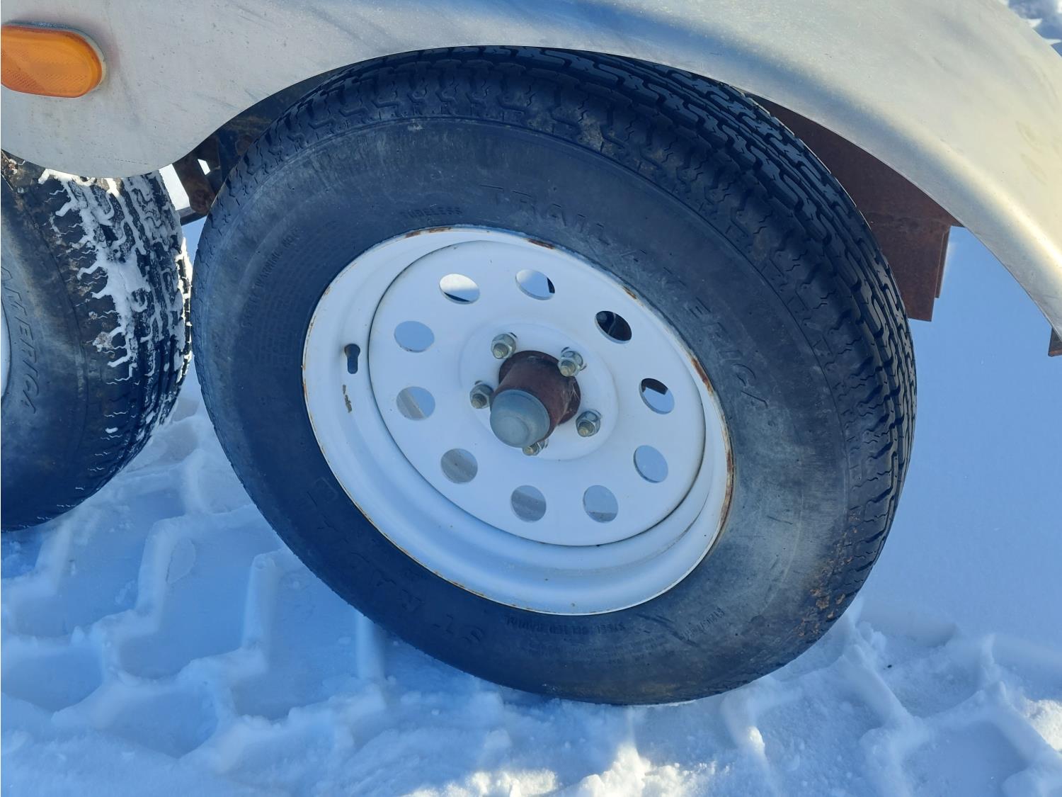 82 inch W, Monarch hydraulic pump, spring suspension, electric brakes, 59 inch L x 78 inch W lift assembly, 205/75R15 tires