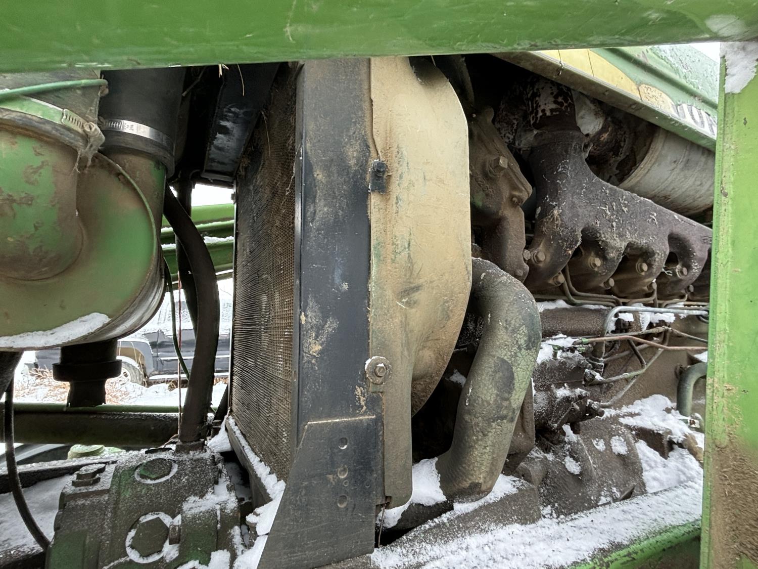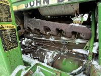 John Deere 148 loader, 54 inch bale forks,John Deere 5.9 L 6 cylinder 97 HP, diesel engine, 84 PTO HP, 16 speed partial synchro transmission, open station platform, 540 PTO, 3 point hitch, 2 rear hydraulic outlets, rear wheel weights, 10.00-16 front tires, 18.4-34 rear tires