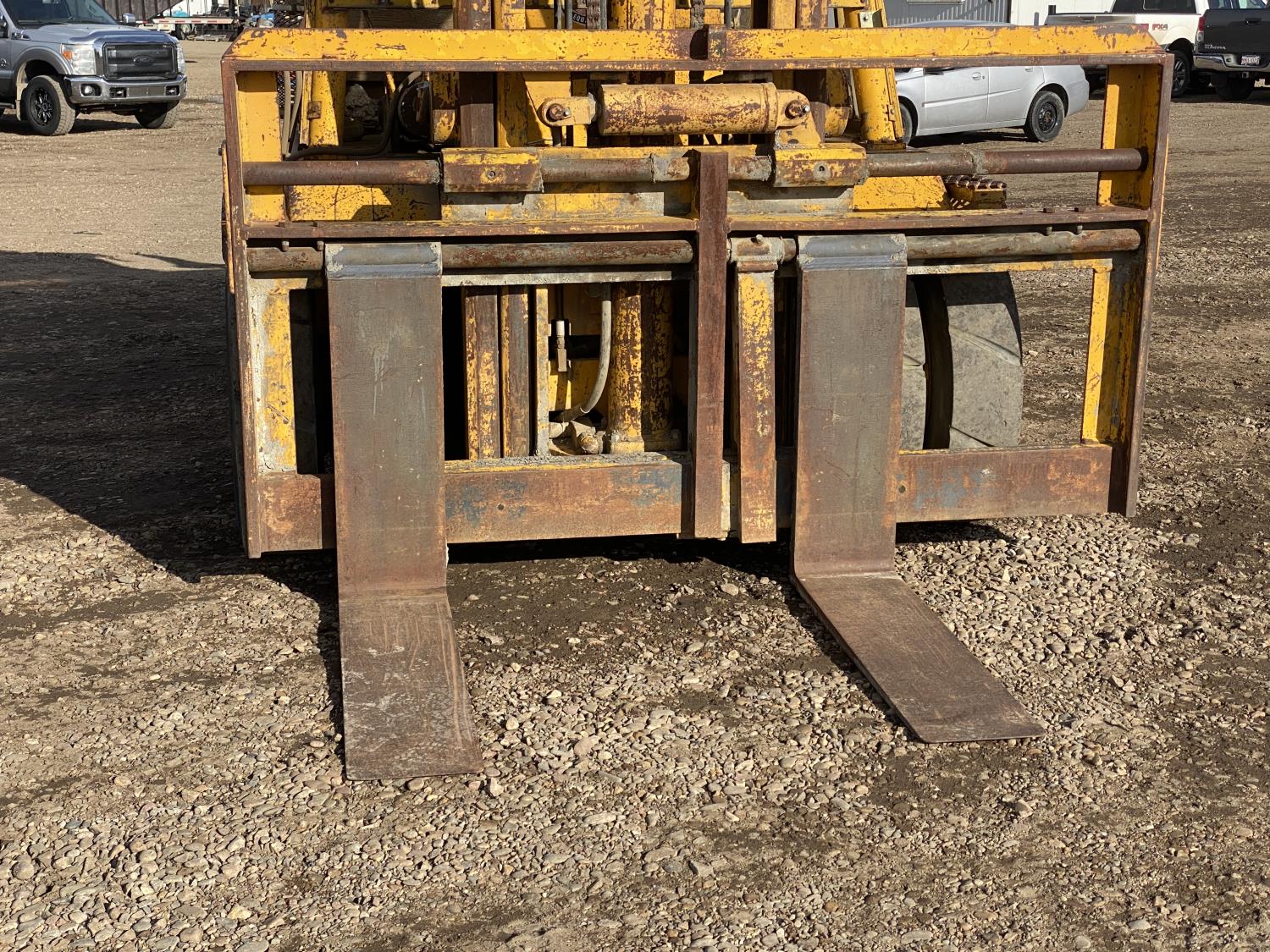 2 stage mast, 192 inch mast, 48 inch forks, Detroit diesel engine, 9.00-20 front tires, 10.00-20 rear tires