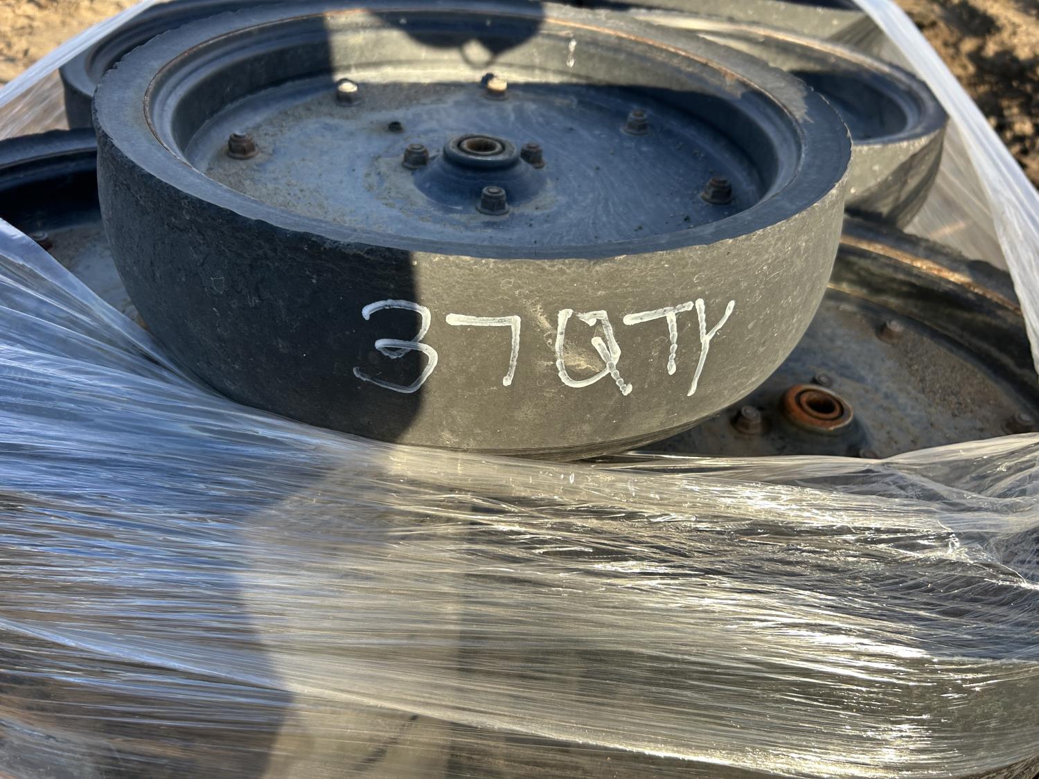 485 Qty of (37) 4 Inch Rubber Capped Steel Packer Wheels