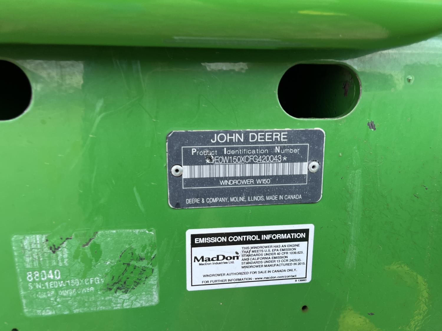 450 2015 John Deere W150 Swather