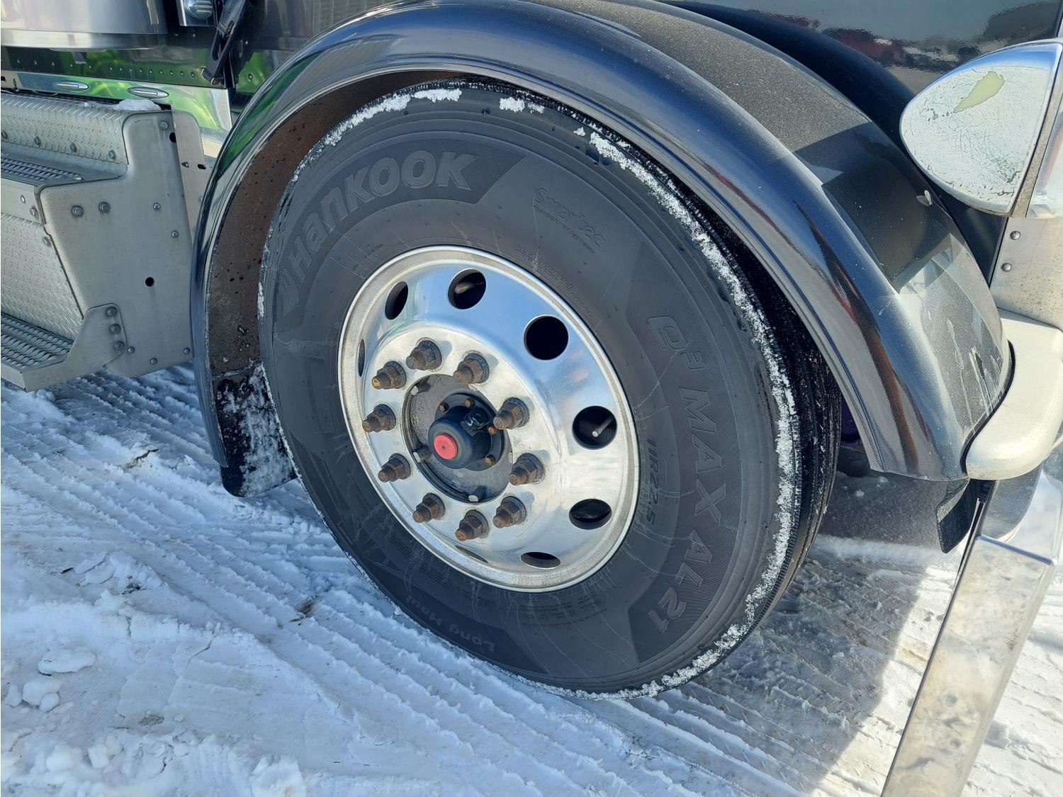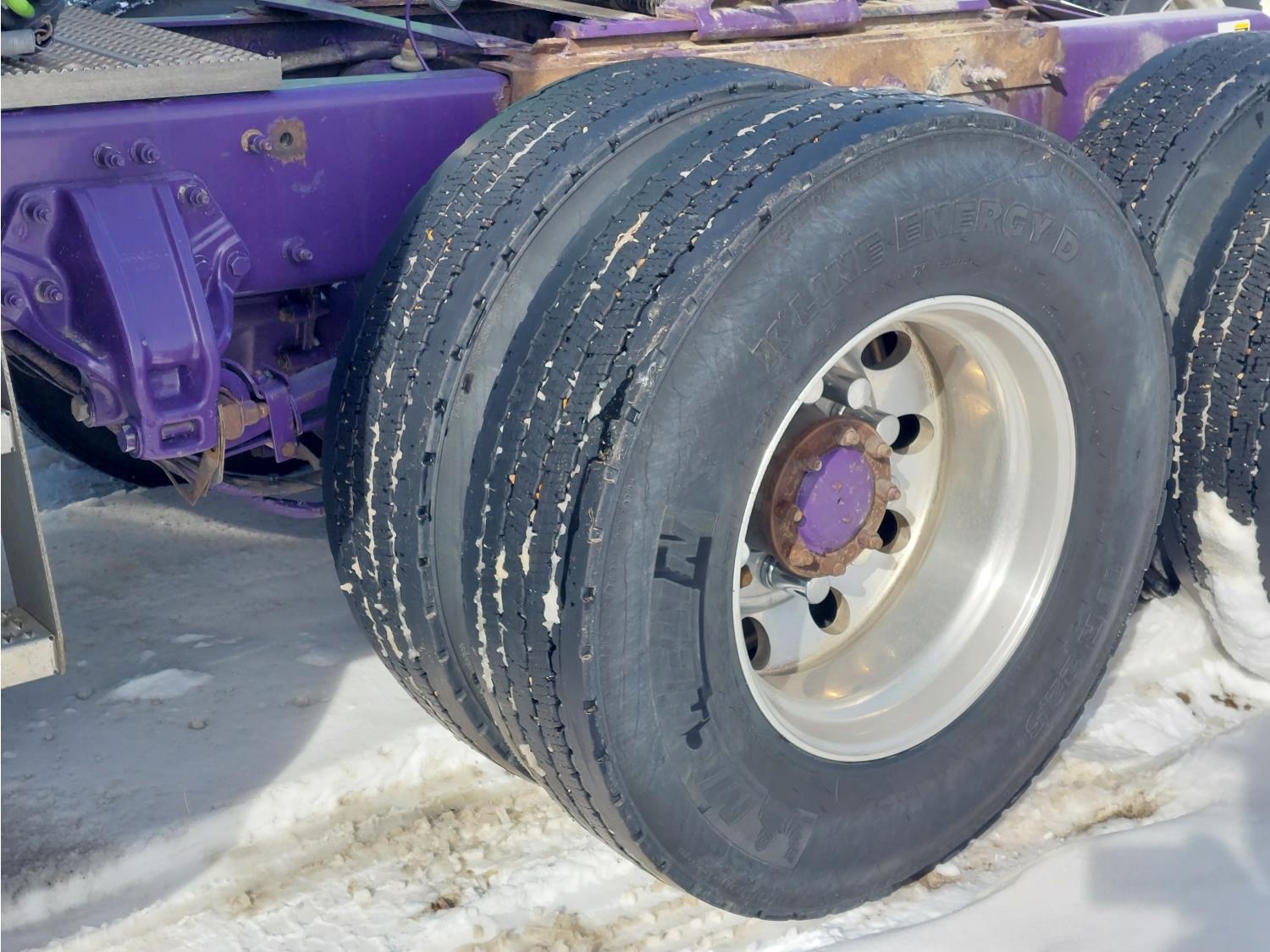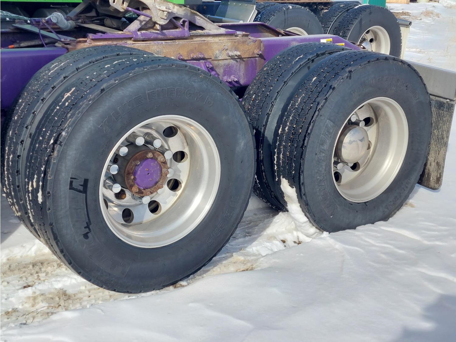Paccar MX-13 12.9 L 6 cylinder 500 HP engine, engine brake, emissions deleted, Eaton 18 speed manual transmission, Espar cab heater, mid rise sleeper, fridge, A/C, cruise control, air ride seats, CB radio, 2-way radio, stereo, Paccar air ride suspension, 12,500 lb front axle, 40,000 lb rear axles, 3 way diff locks, single frame, all aluminum wheels, 11R22.5 tires