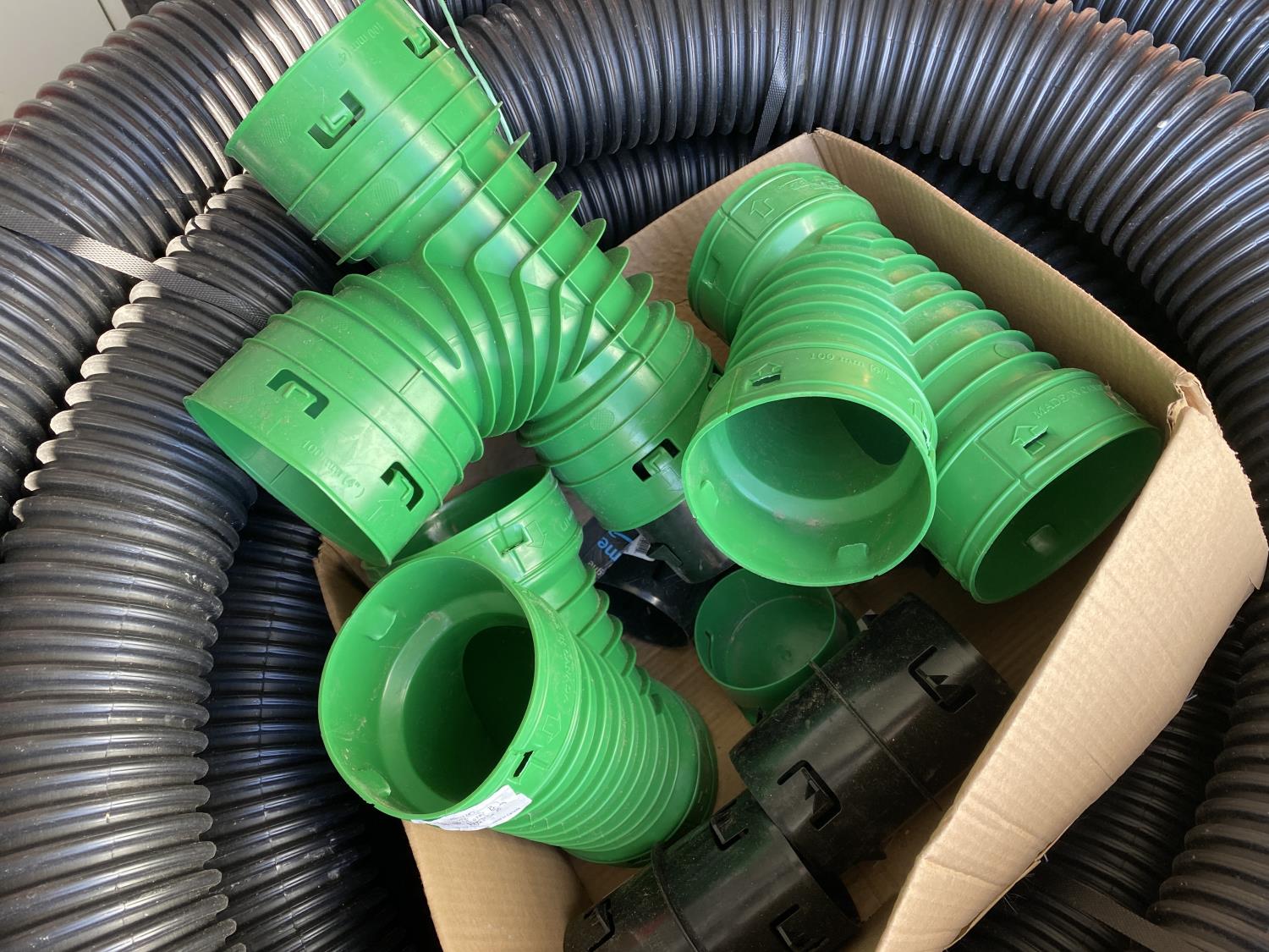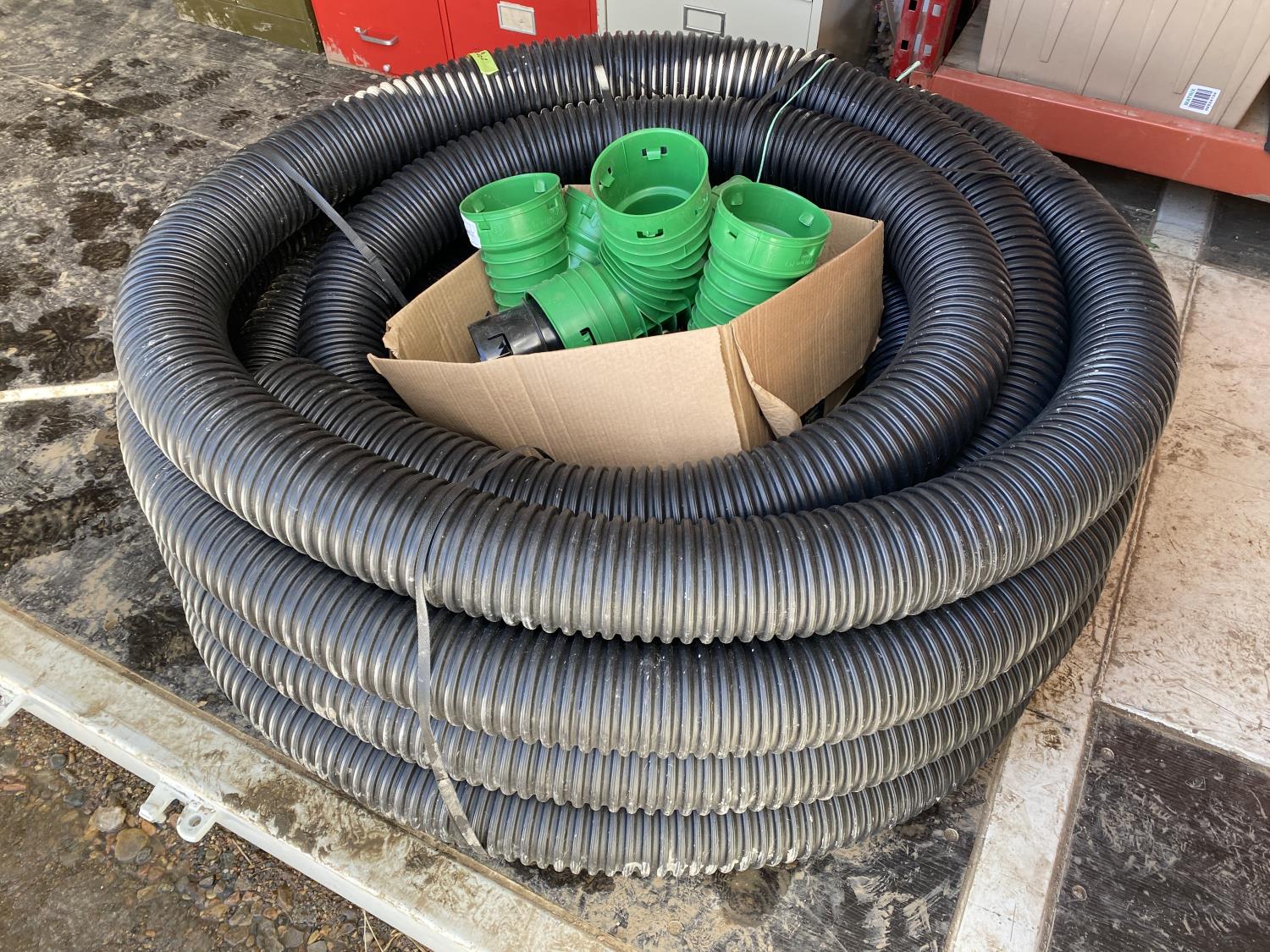 1829 100 Ft X 4 Inch Non Perforated Big O Pipe w/ Misc Fittings