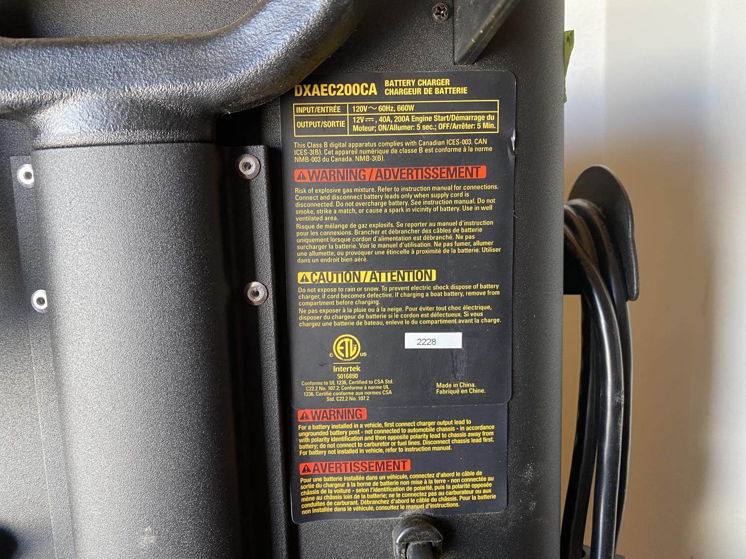 1197 DeWalt DXAEC200CA 12 Volt Battery Charger and Propane Heater