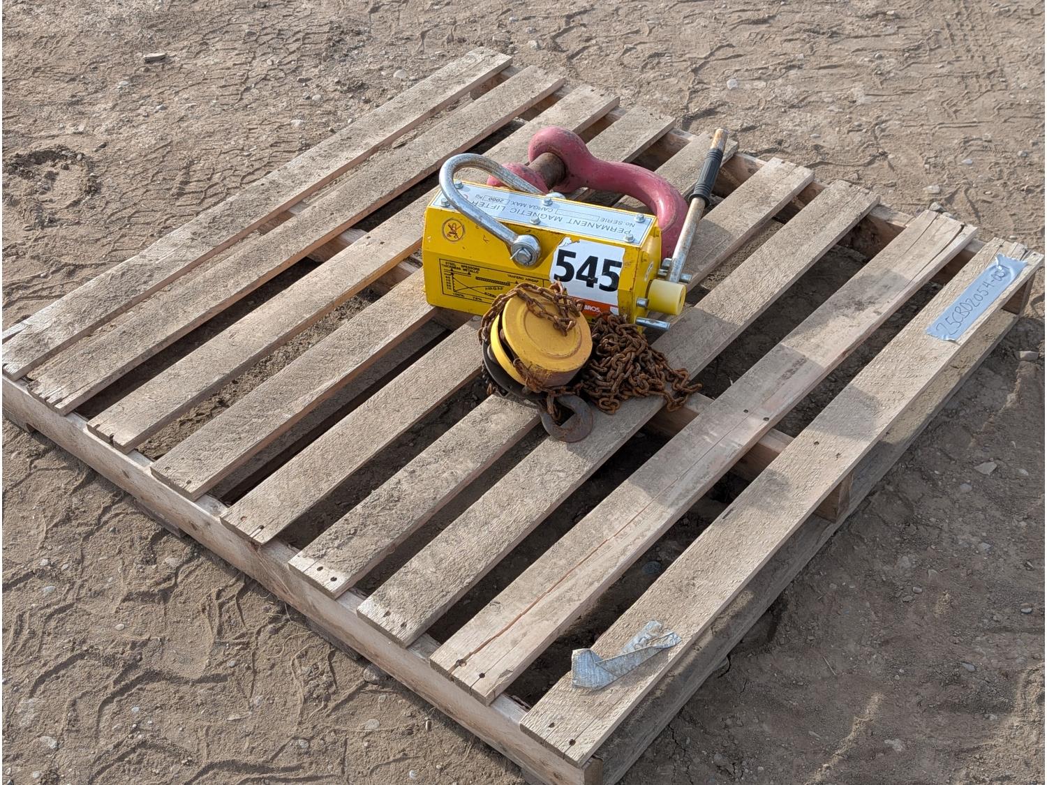 1189 2 Ton Magnetic Lift Overhead Crane w/ Pulley Block & Chain