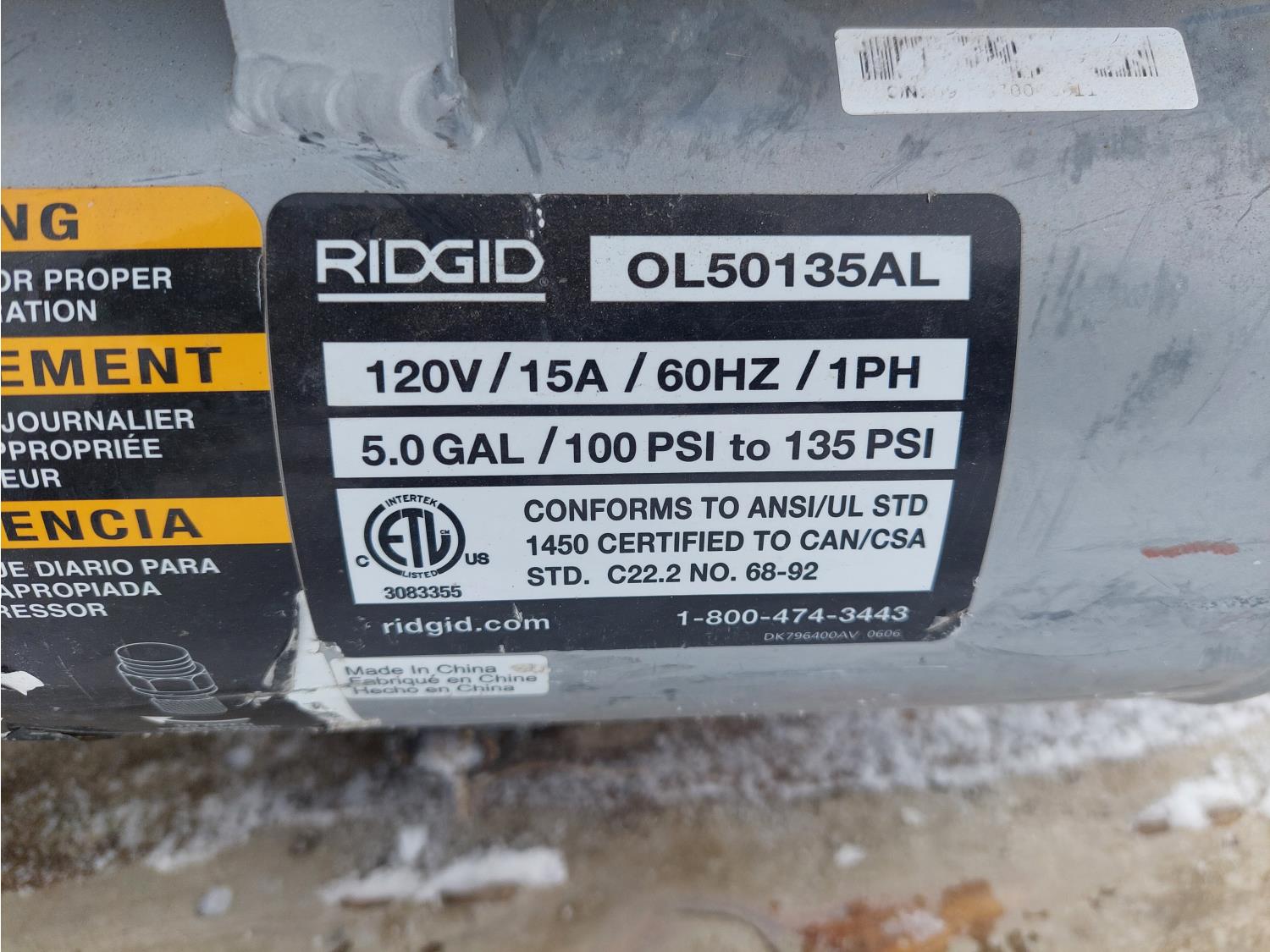 120V, single phase, Rigid compressor