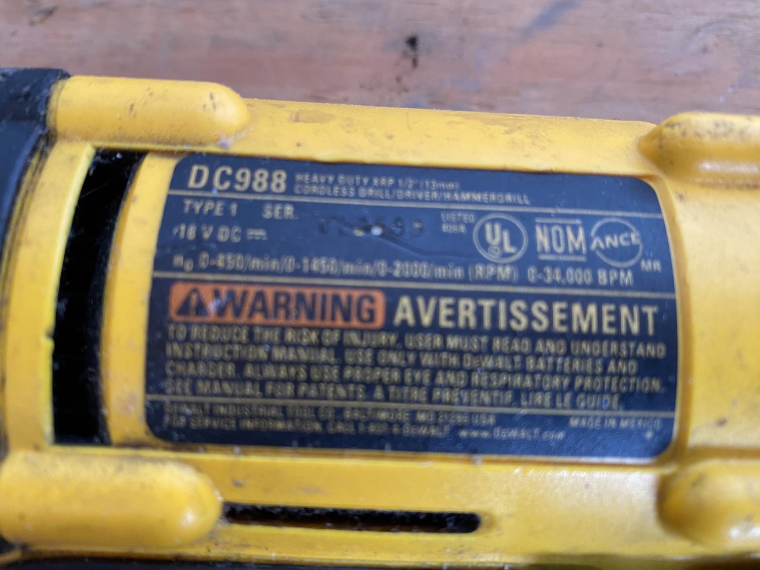 1329 DeWalt DC988 Cordless Hammer Drill