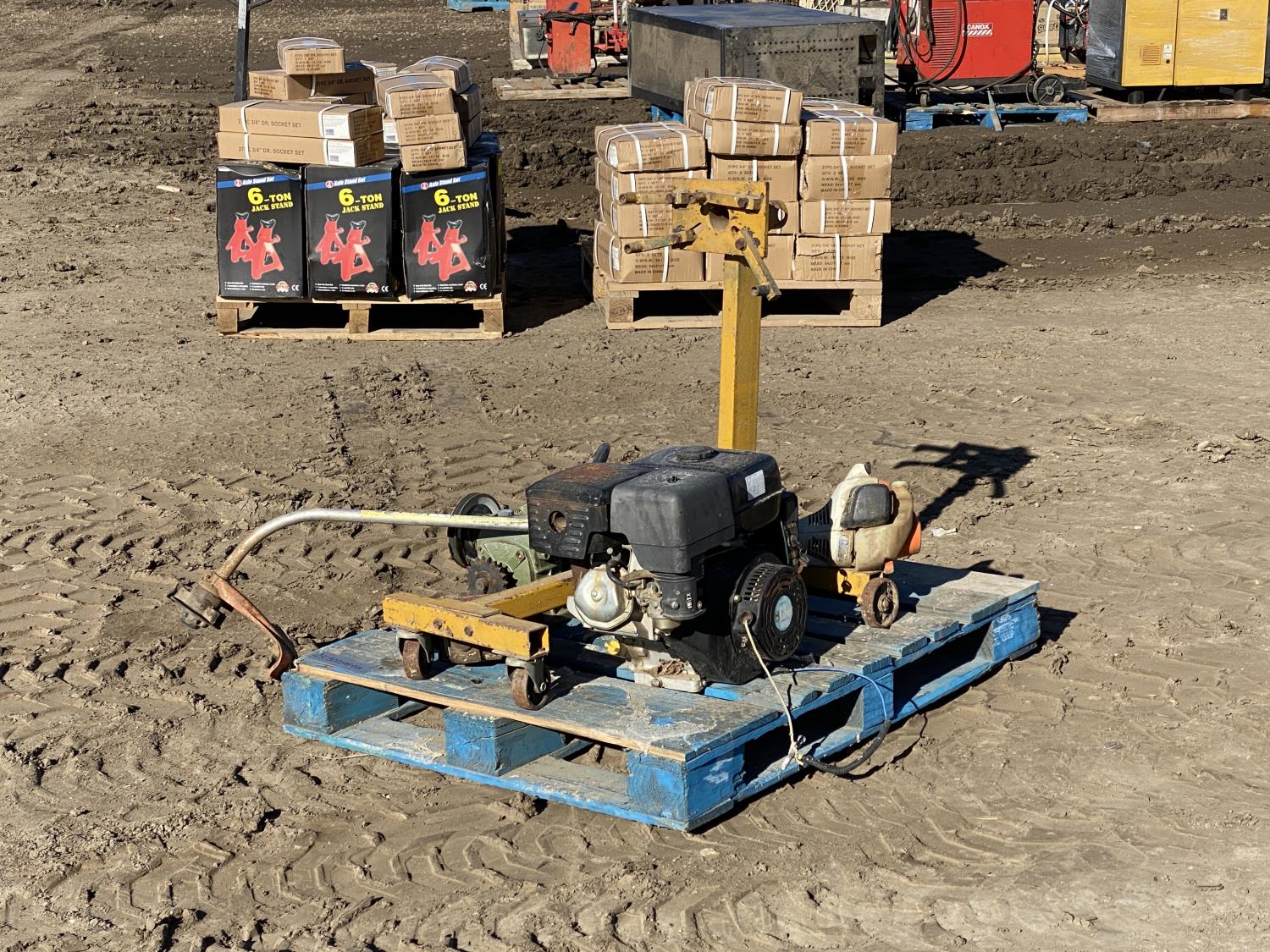 1514 Engine Stand w/ Engine, Hydraulic Motor & (2) Gearboxes
