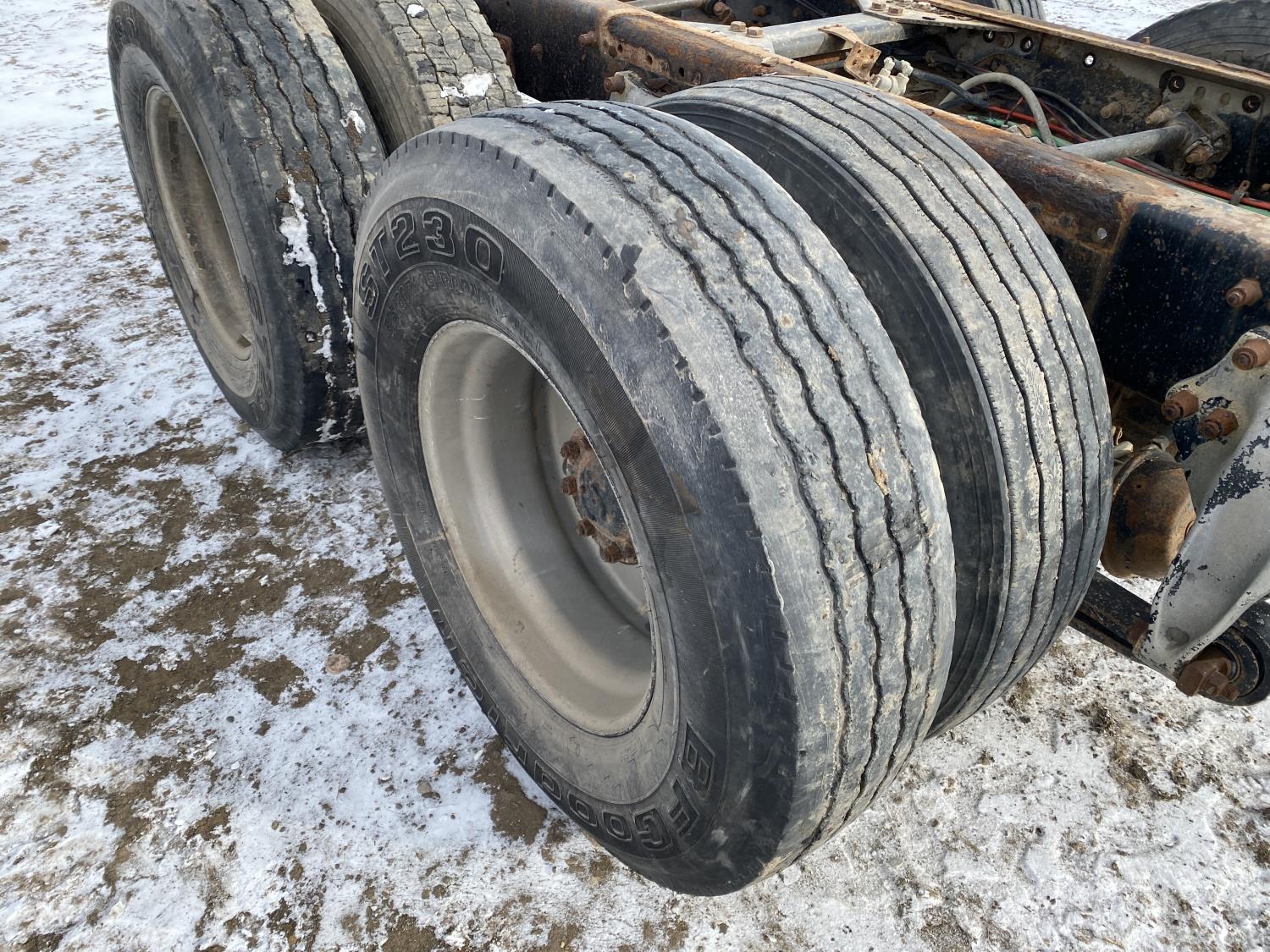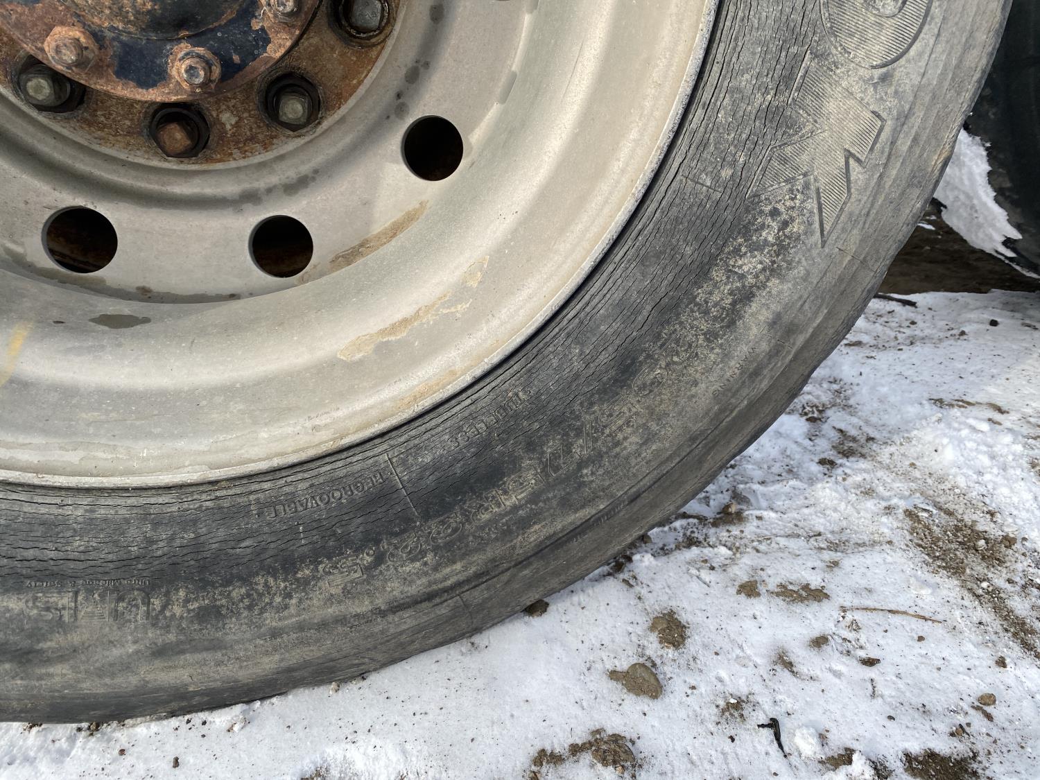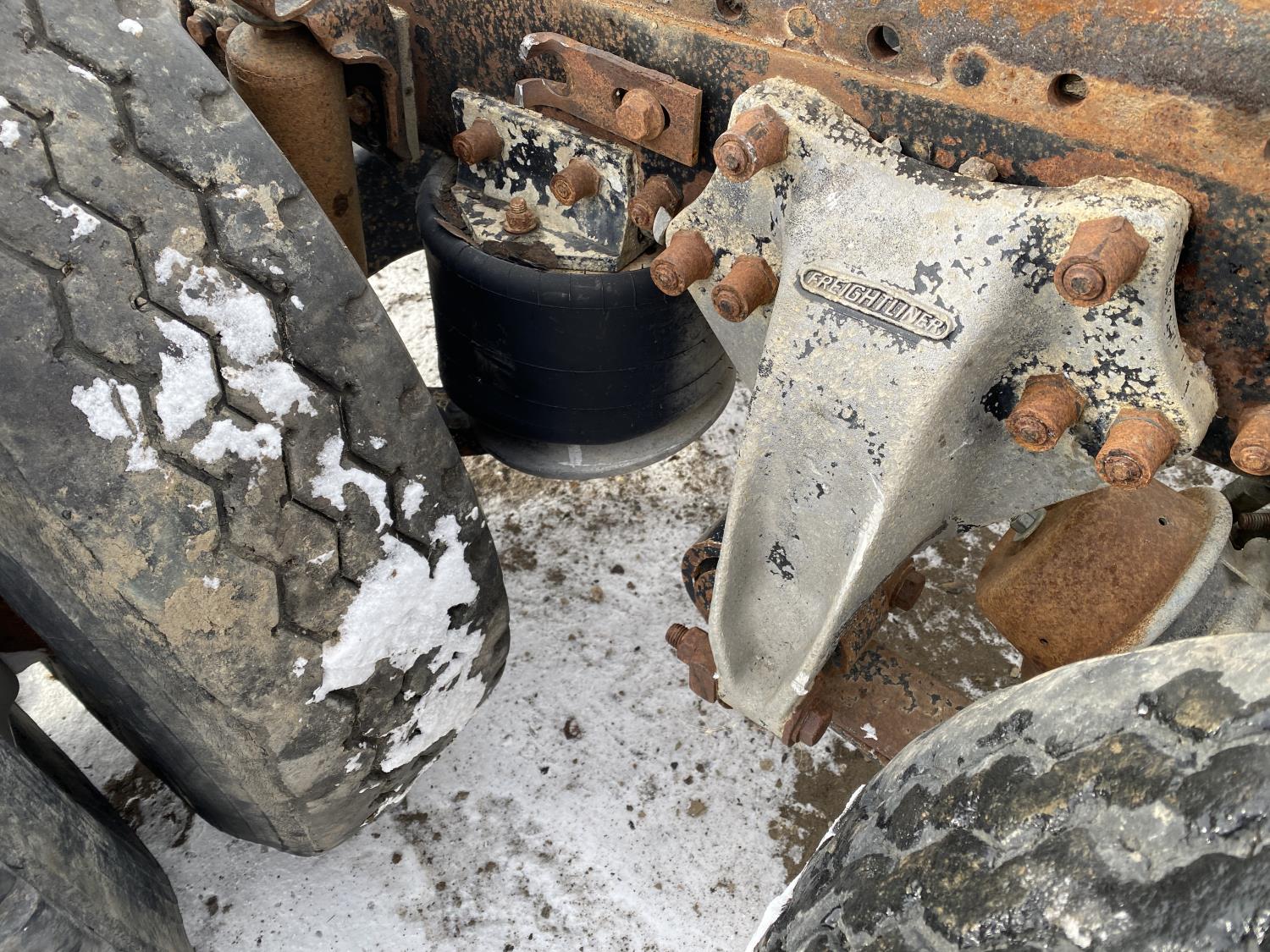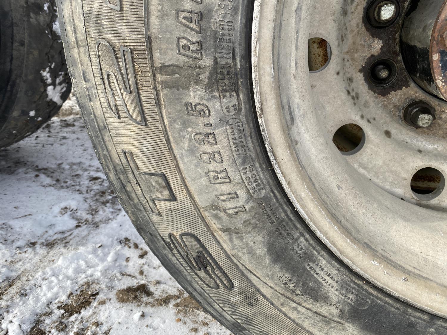 tire sizes vary 315/80R22.5, 11R22.5, and 295/75R22.5, 46,000 lb axles, aluminum rims, Freightliner air ride suspension