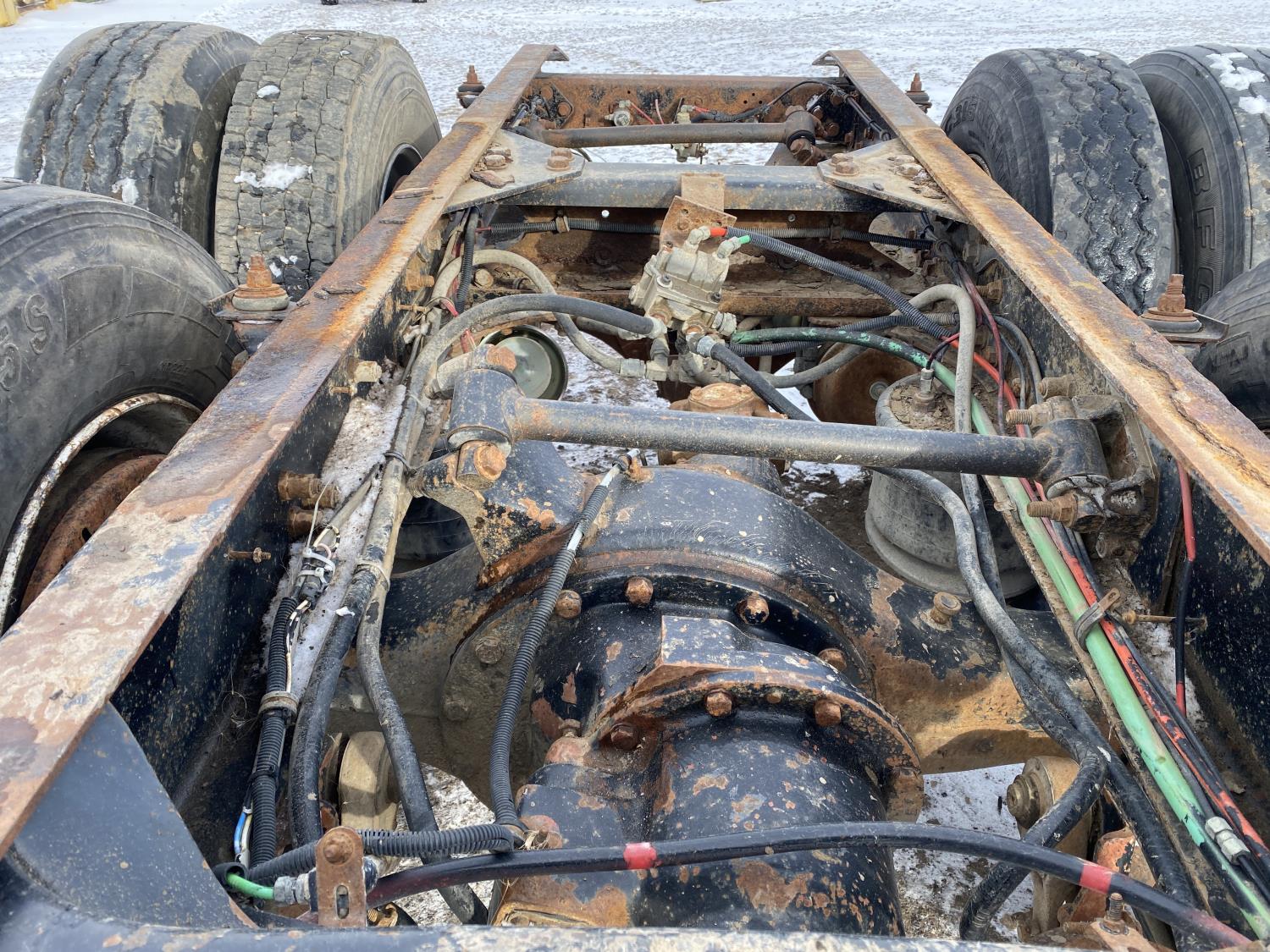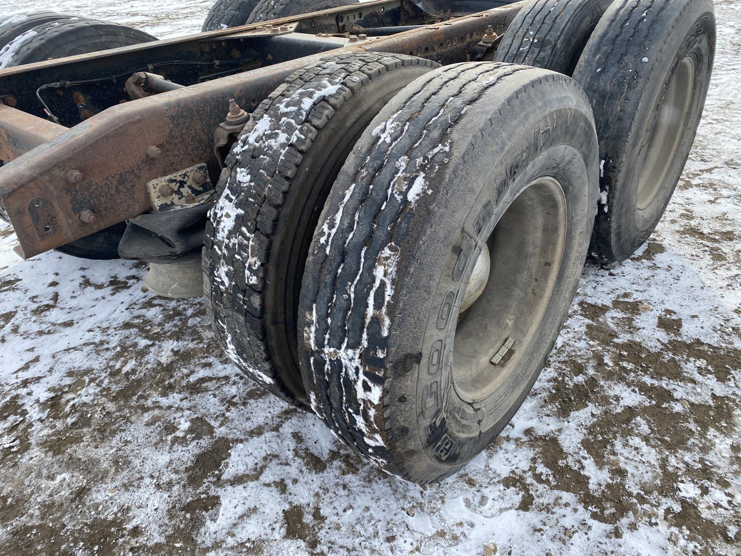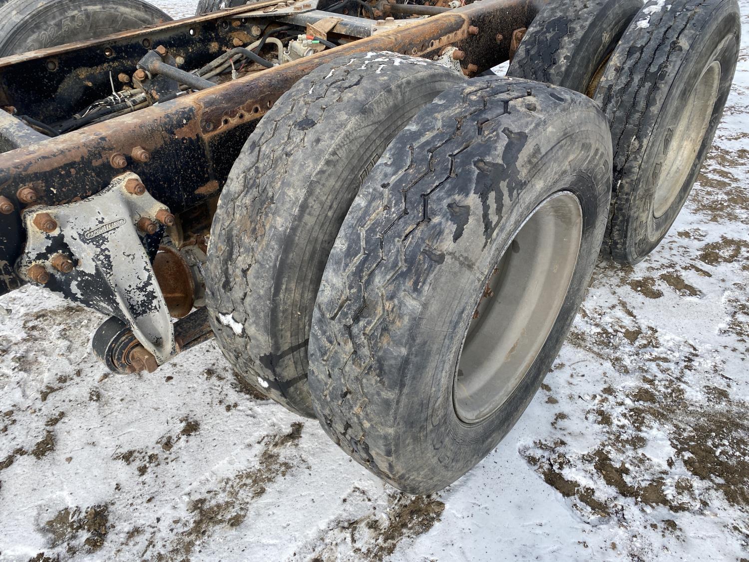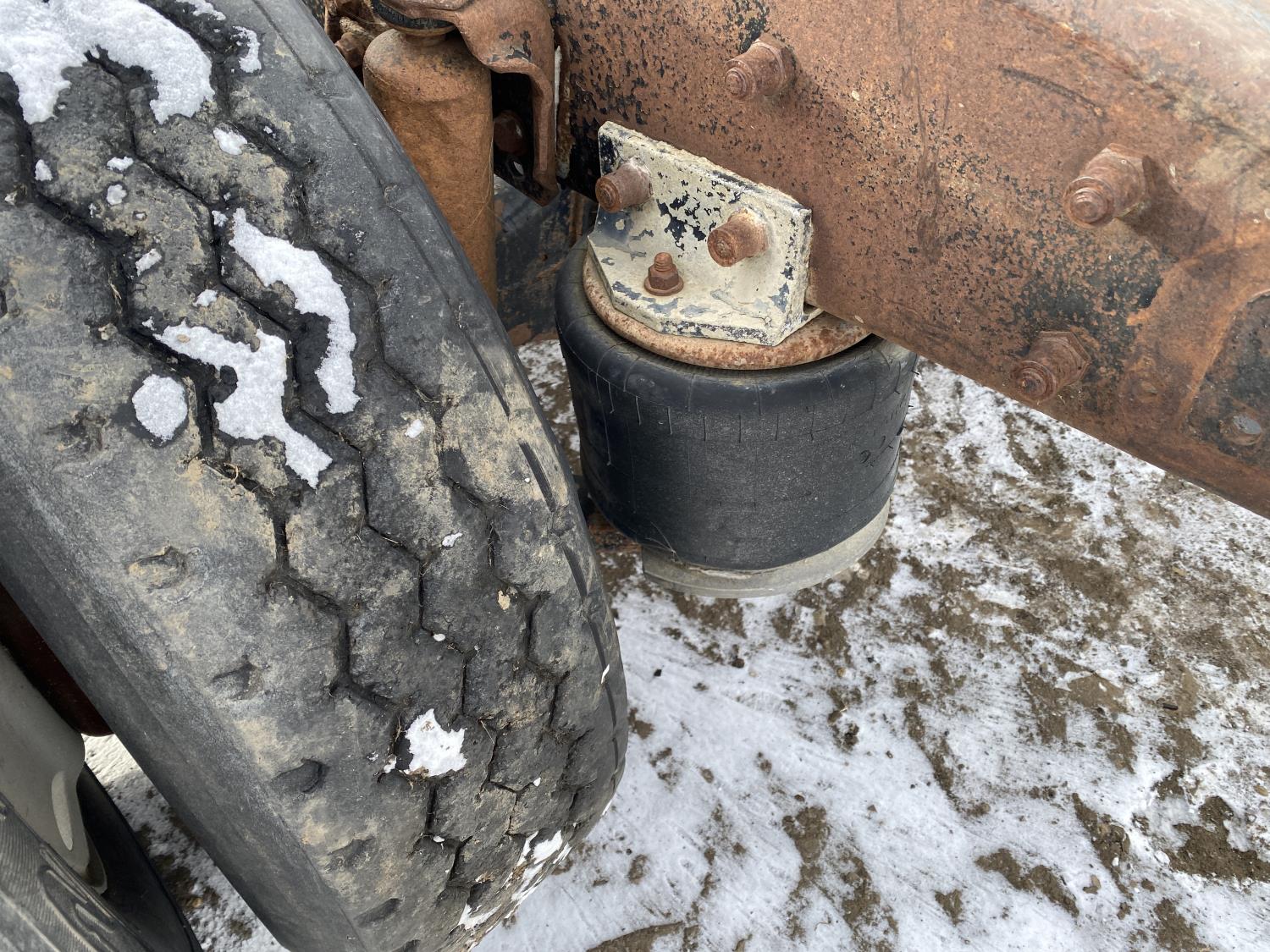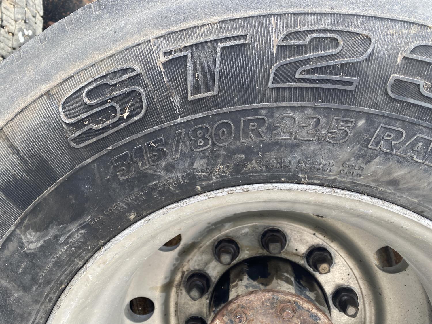 tire sizes vary 315/80R22.5, 11R22.5, and 295/75R22.5, 46,000 lb axles, aluminum rims, Freightliner air ride suspension