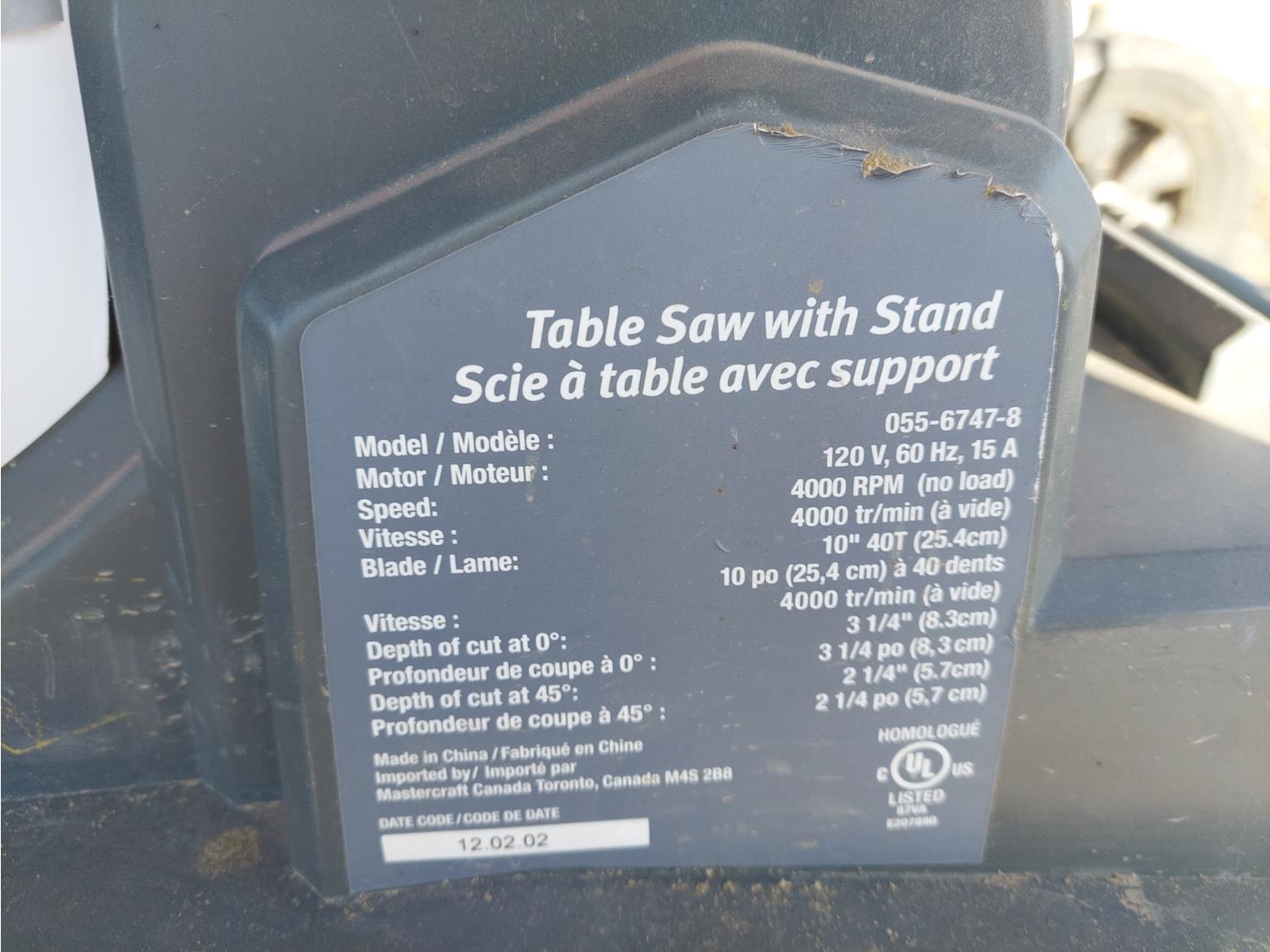1157 Mastercraft Maximum 10 Inch Table Saw w/ Stand
