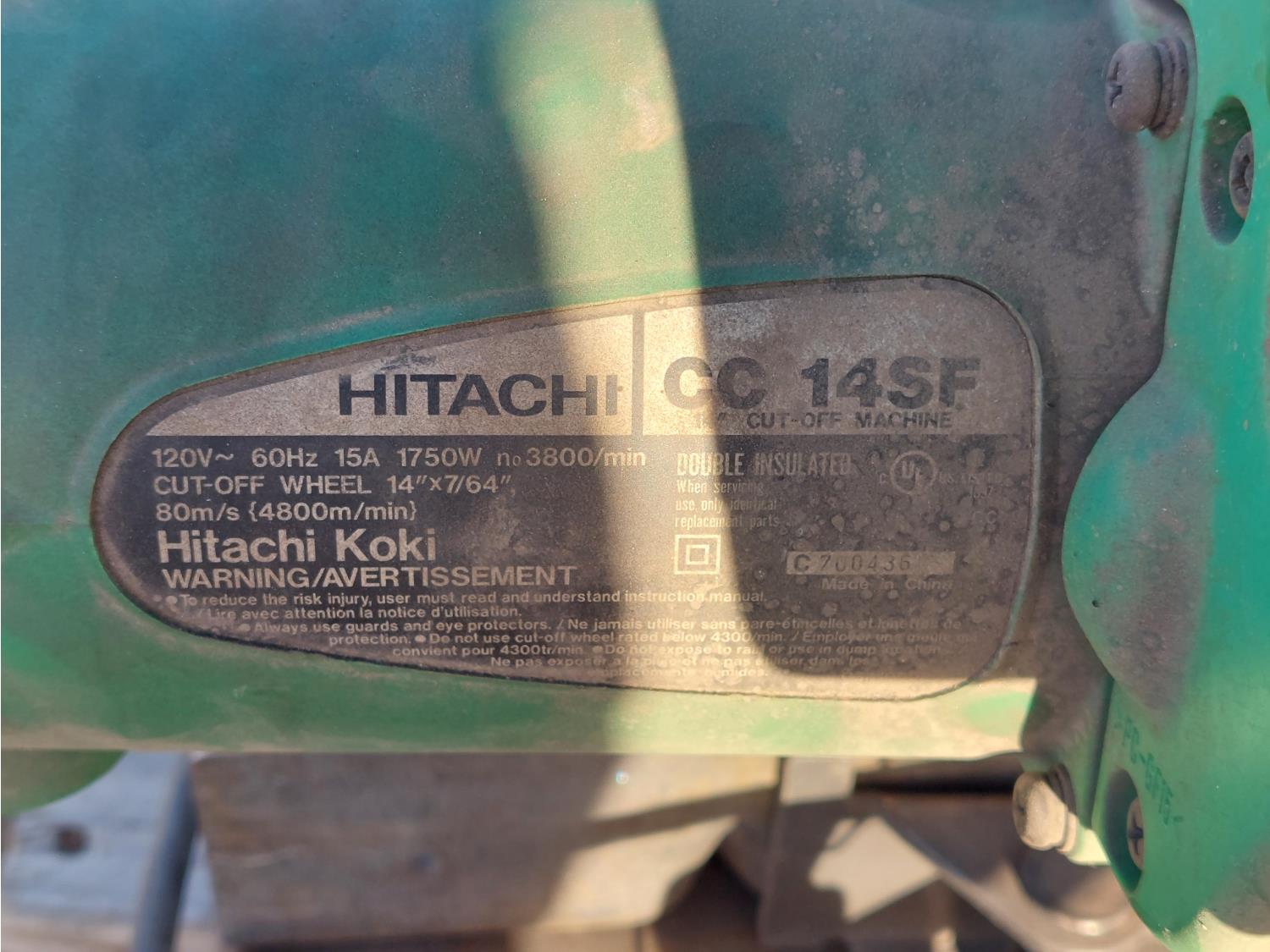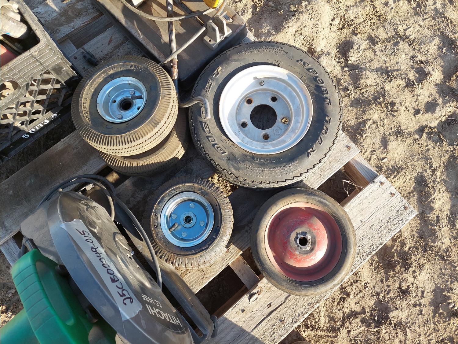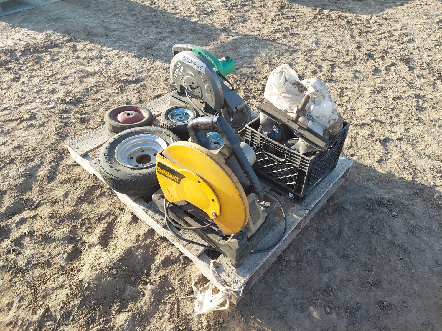 Dewalt DW870, serial number 38475, 120V, 14 Inch blade, 15A. HITACHI CC14SF, serial number C700436 120V. miscellaneous. tires