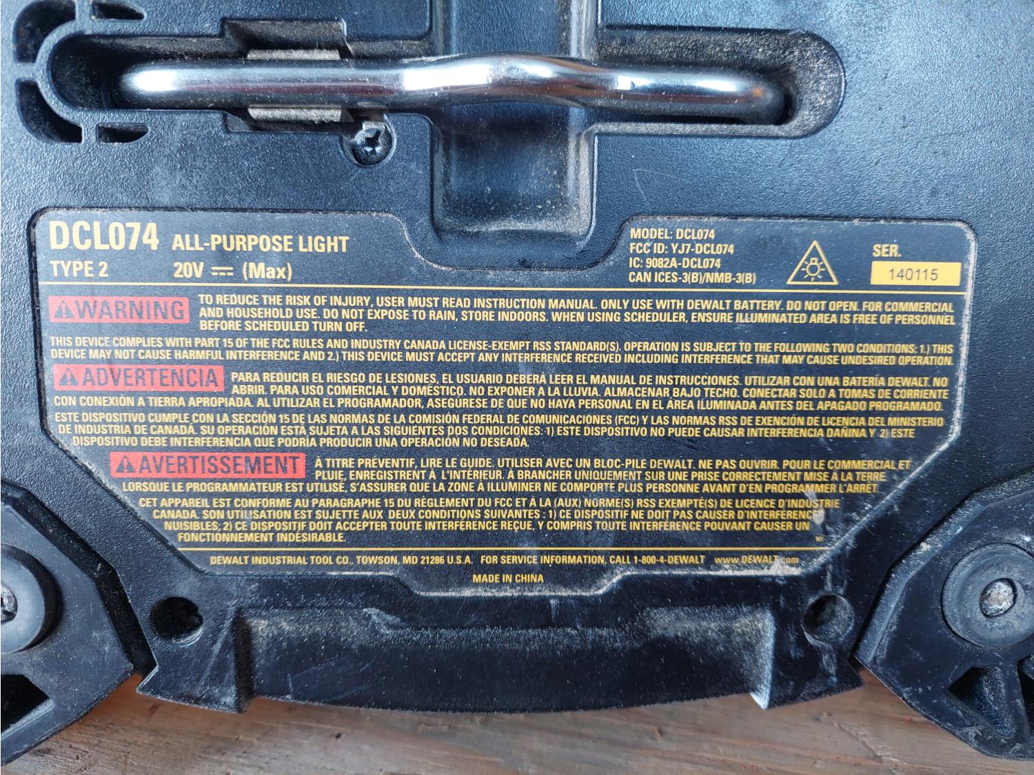 1313 Qty of (2) Dewalt Dcl074 20V All Purpose Lights